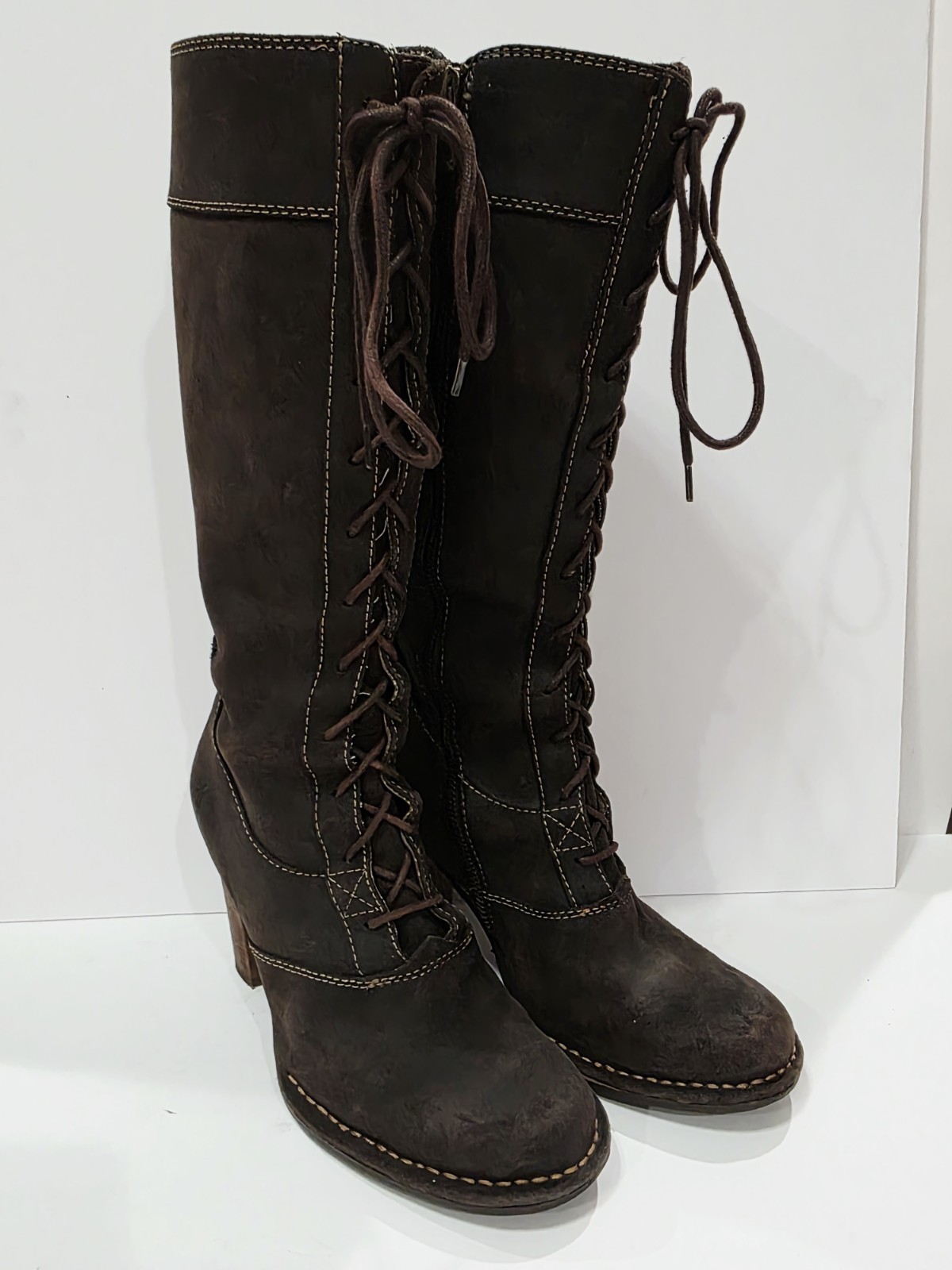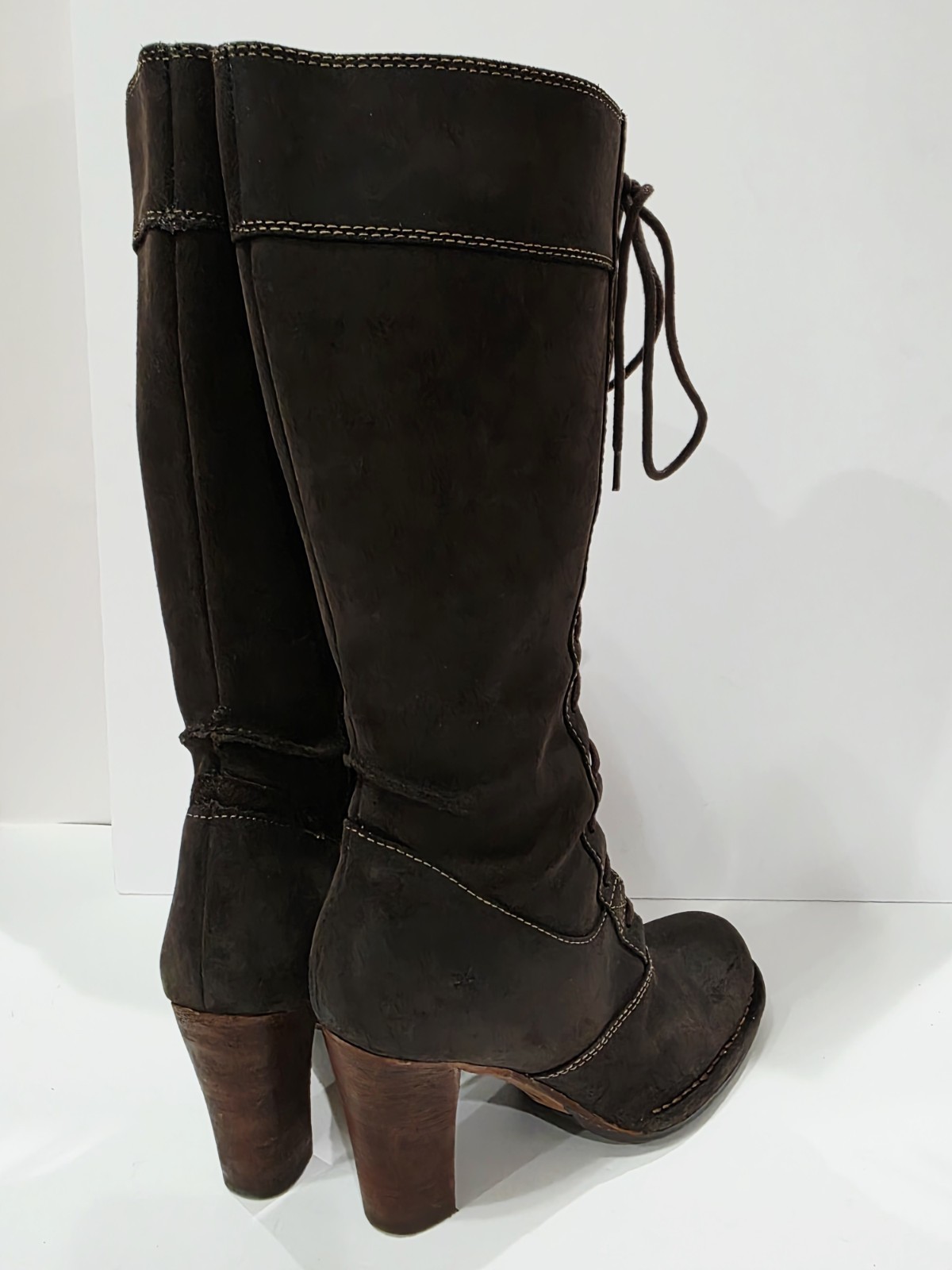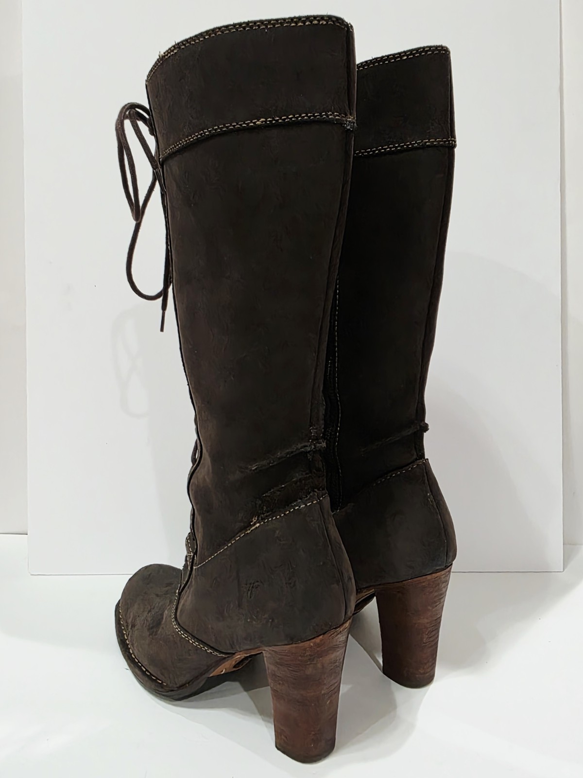 Frye VILLAGER LACE 77610 Brown Leather Boot Heel Knee High Tall Zipper 7.5 M New