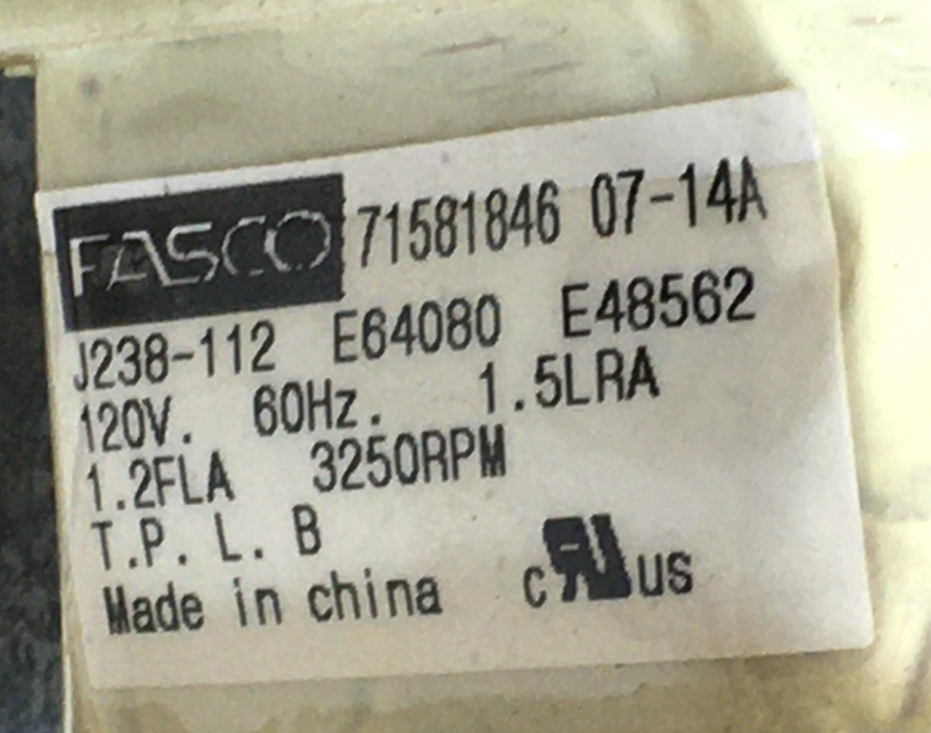 This is FASCO 70581846C Draft Inducer Blower Motor J238-112 103014-03 71581846 3250 RPM 120V used part.