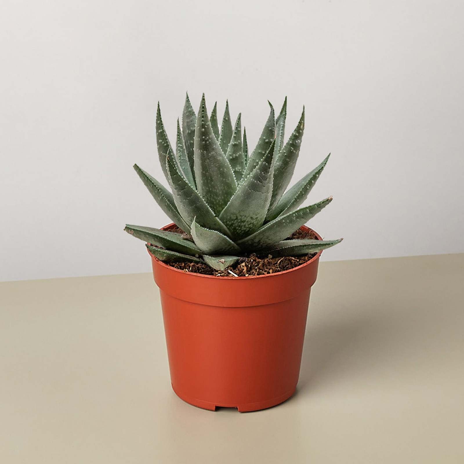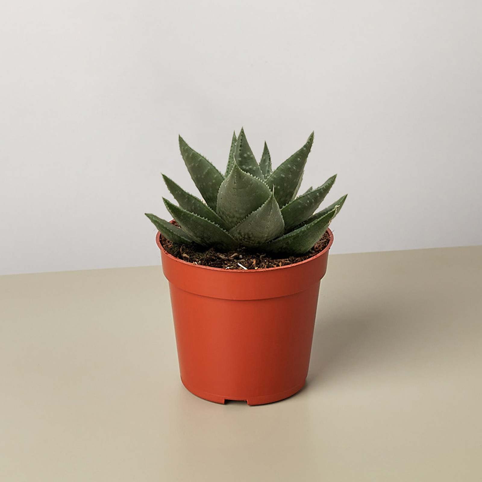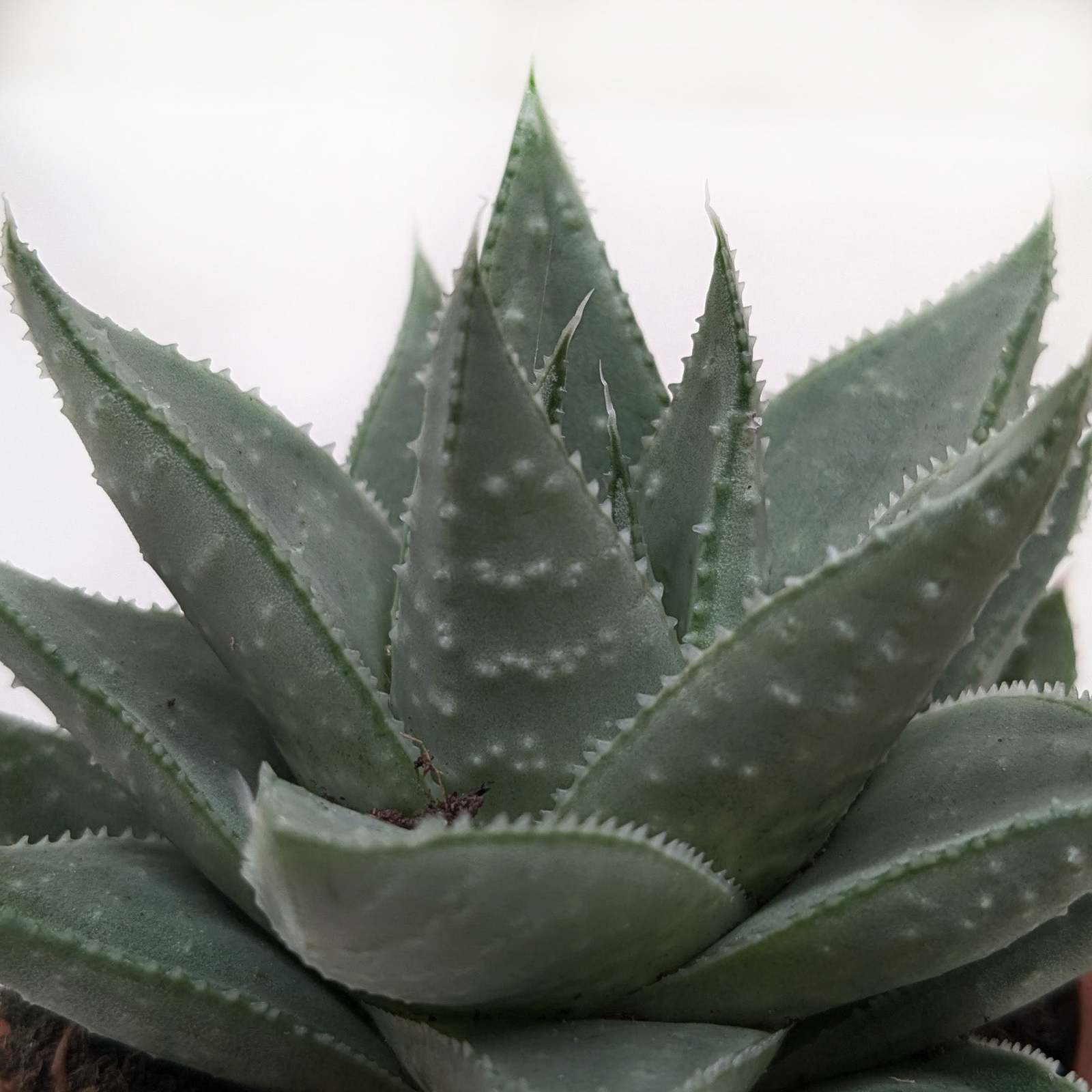 Description: Haworthia savanna is a small, low-growing plant that features rosettes of long, pointed, fleshy foliage where each individual leaf is covered with white warts or bands which give them their distinctive look. The plant is thick with fleshy leaves that are gray-green in color.
