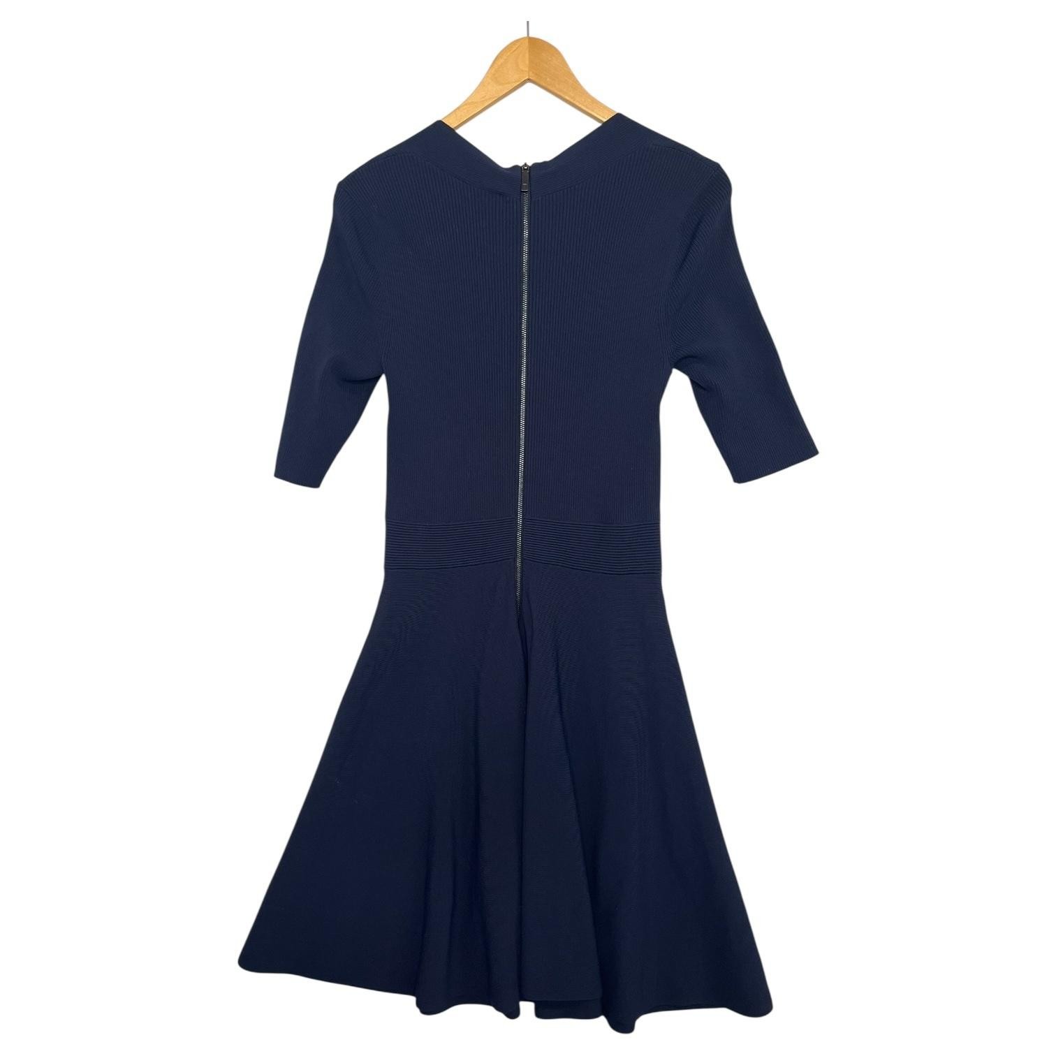 Ted Baker London Dress Womens 3 Blue Navy Fit Flare Ribbed Knit Half Sleeve Designer