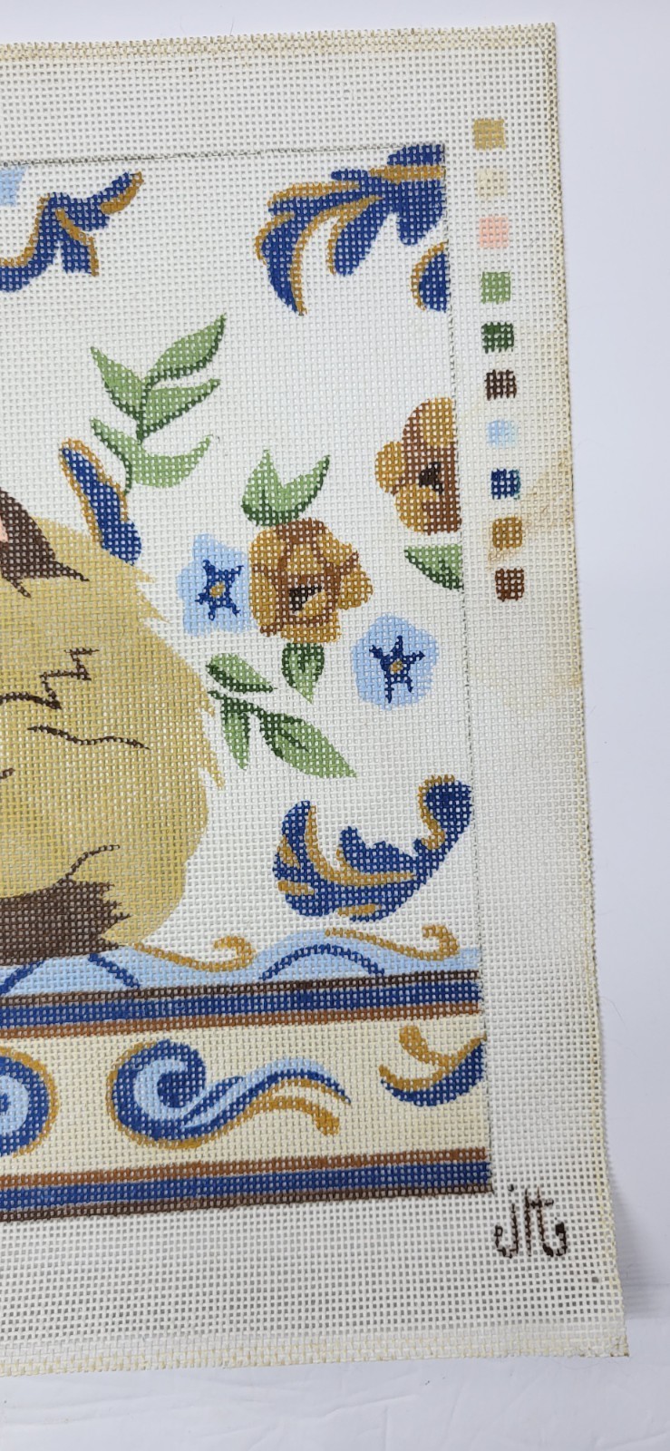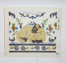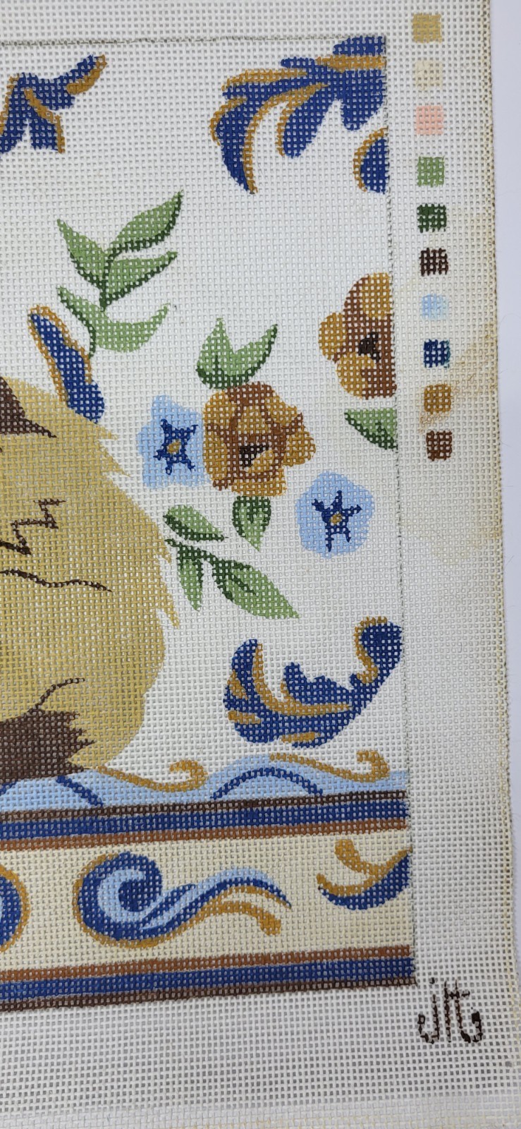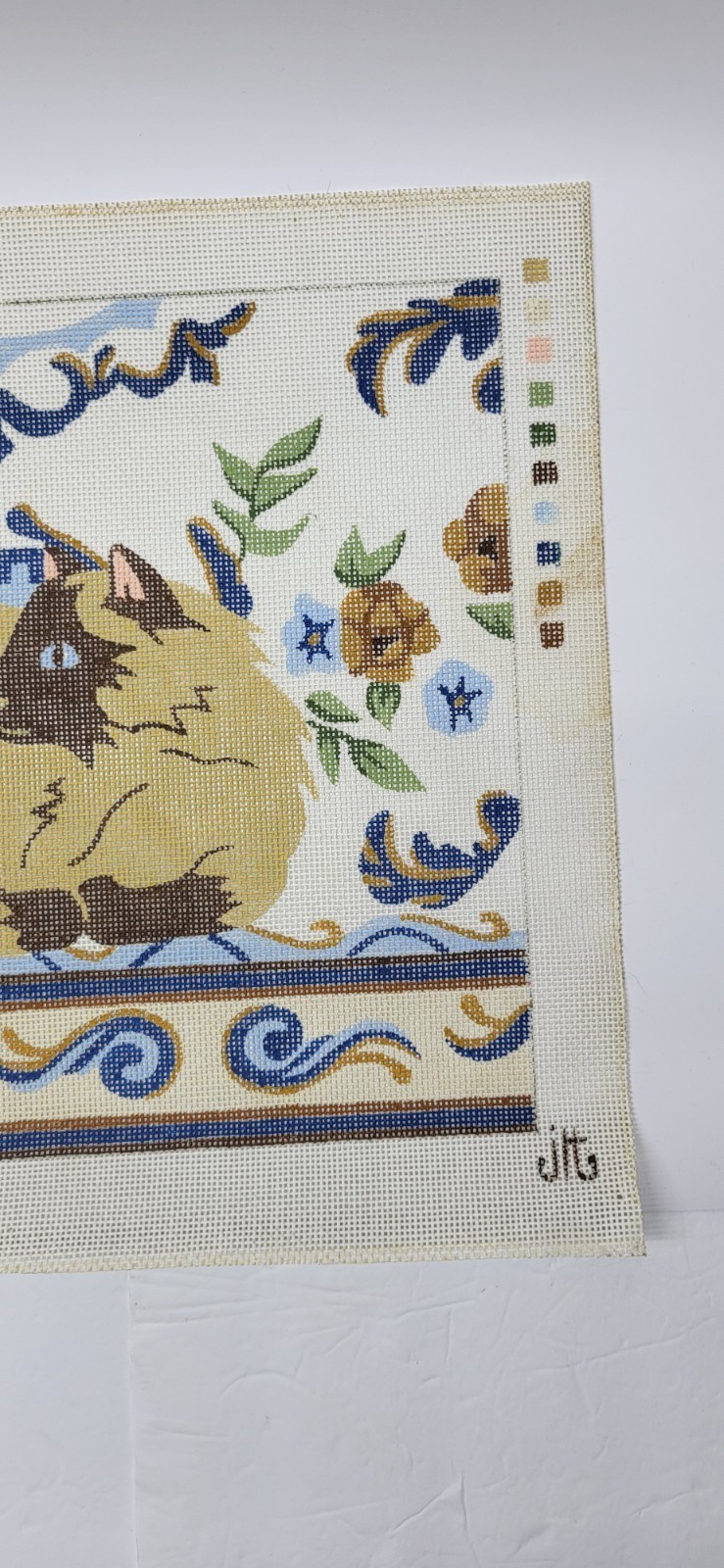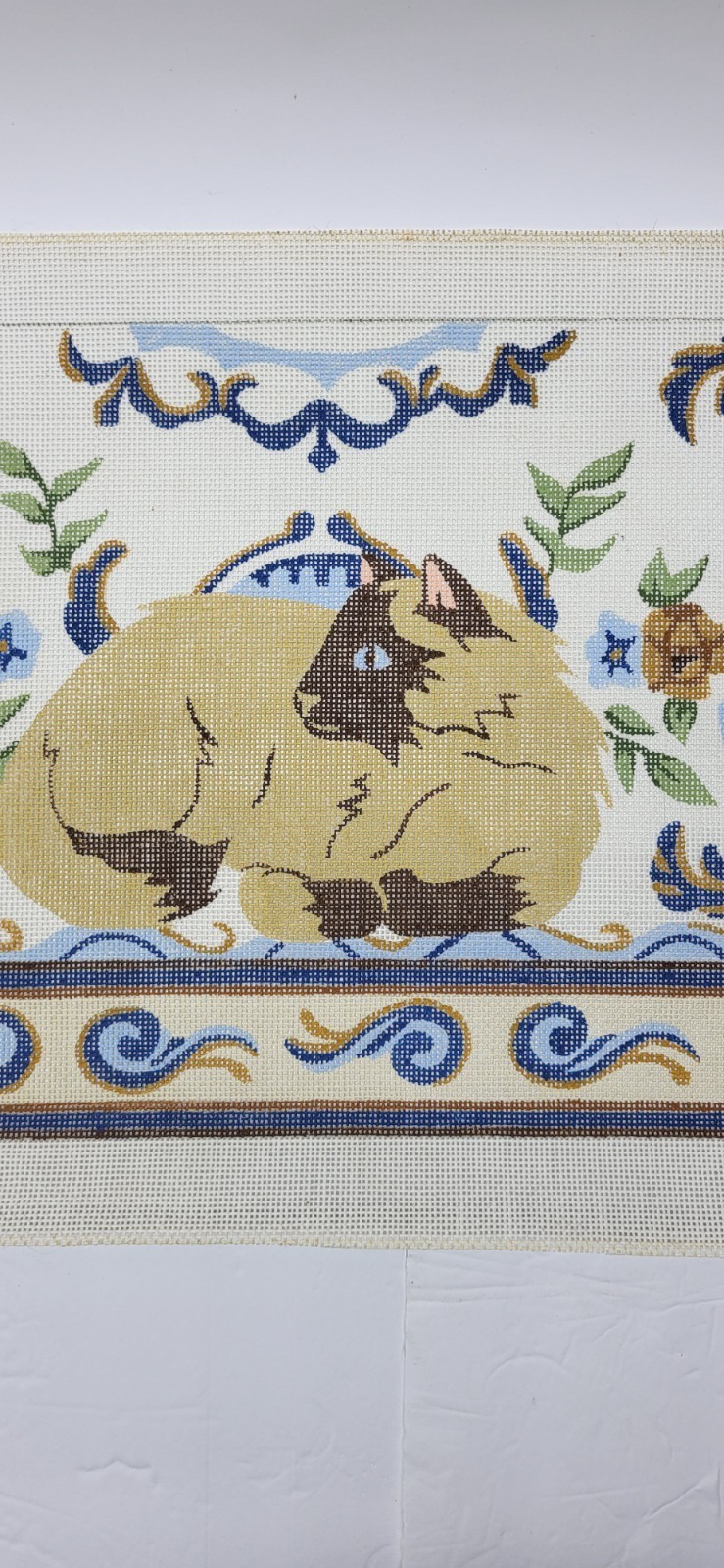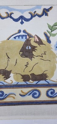 Vintage JLT The Kermin Cat Siamese Needlepoint ornate floral and scroll border