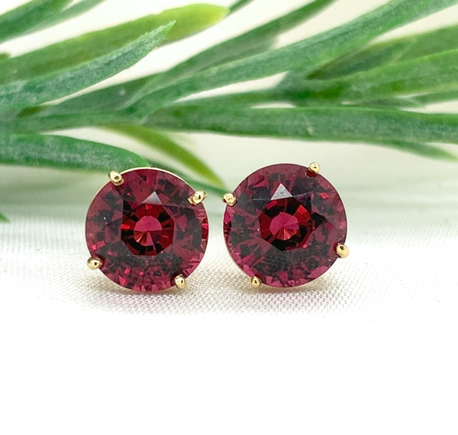 14k Yellow Gold 8.85 Carat TW Rhodolite Genuine Garnet Stud Earrings (#J7381)