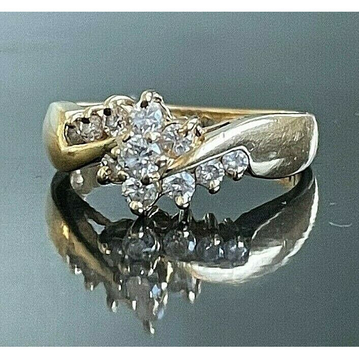 14K YELLOW GOLD 0.31 CARAT DIAMOND COCKTAIL RING SIZE 6.75 SKY