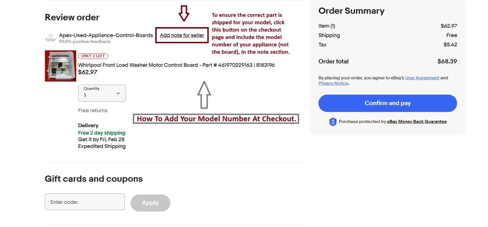 This is a factory original used part. The best way to ensure this is the correct replacement for your appliance is to match the part number on the sticker of your original board to the number listed in the title of this ad. (See picture)