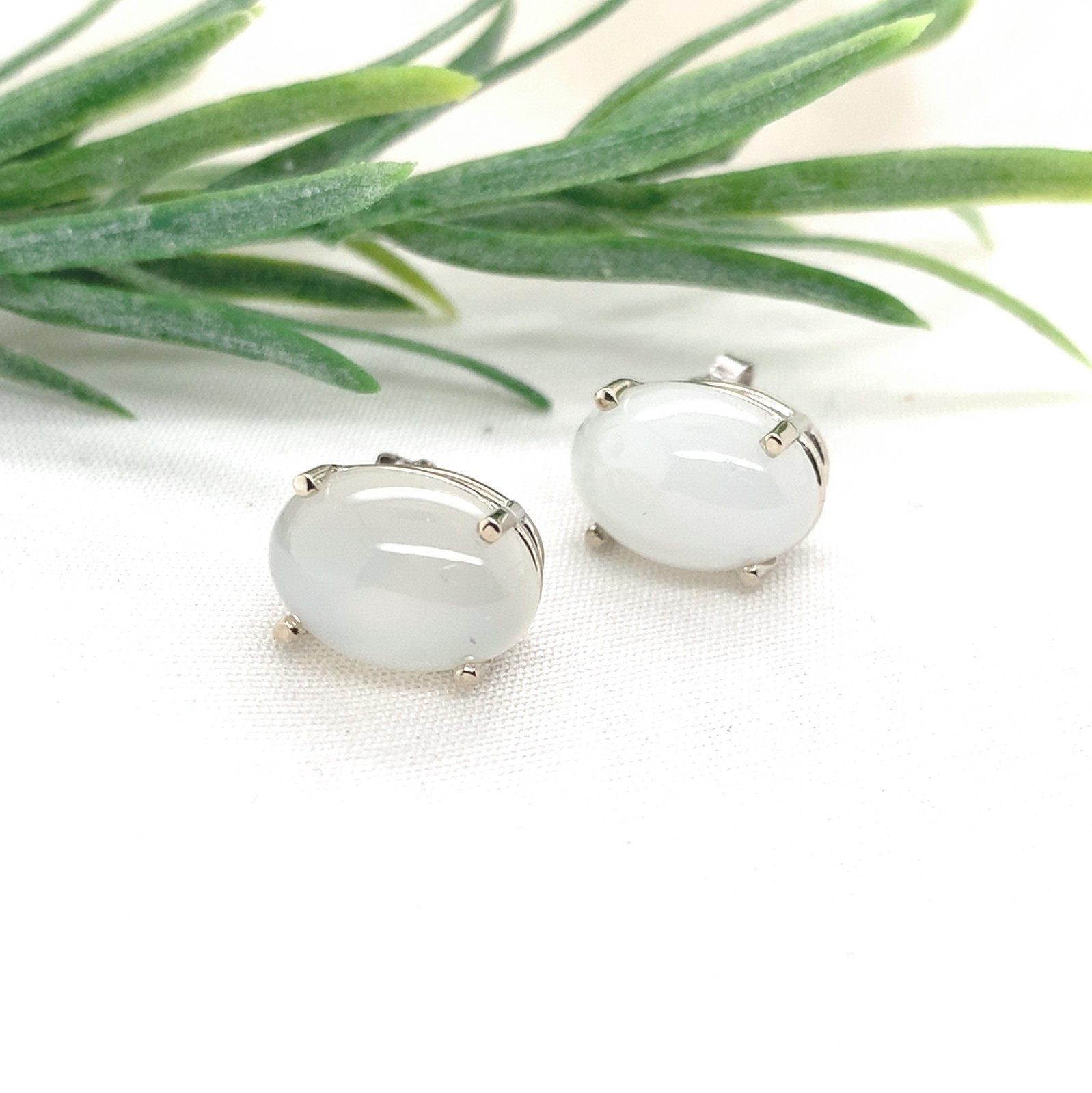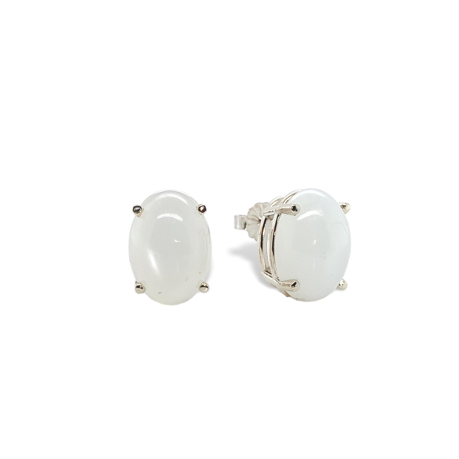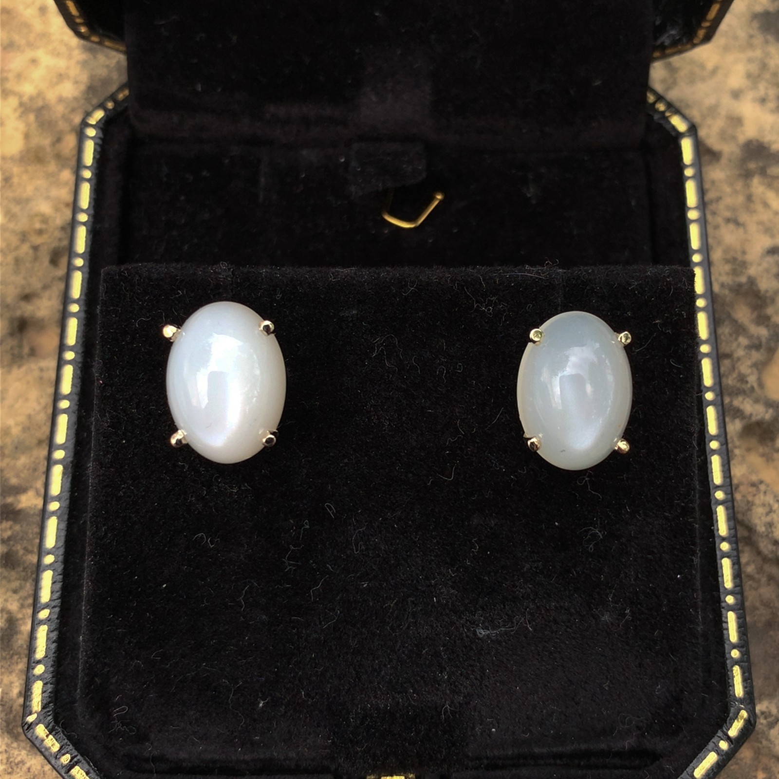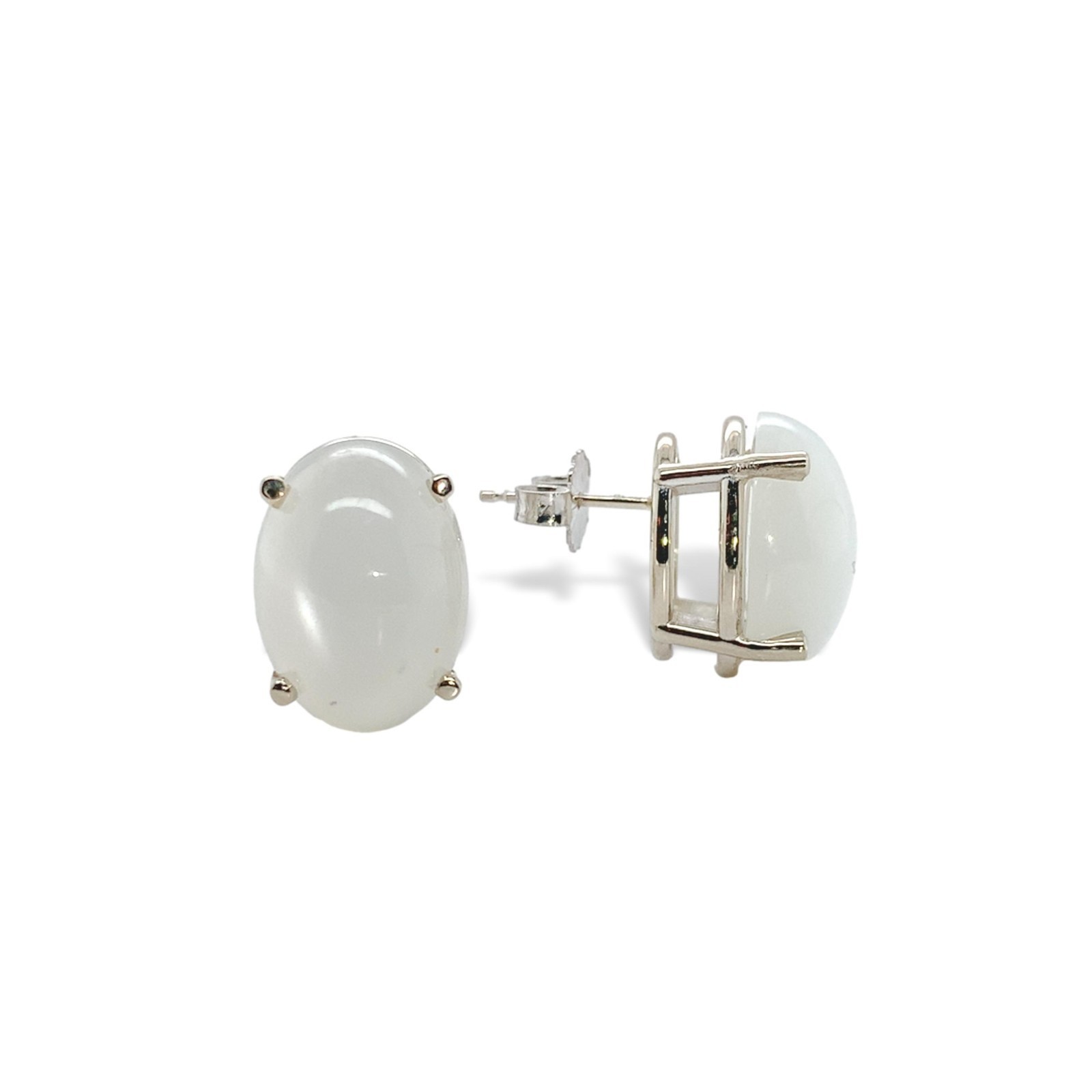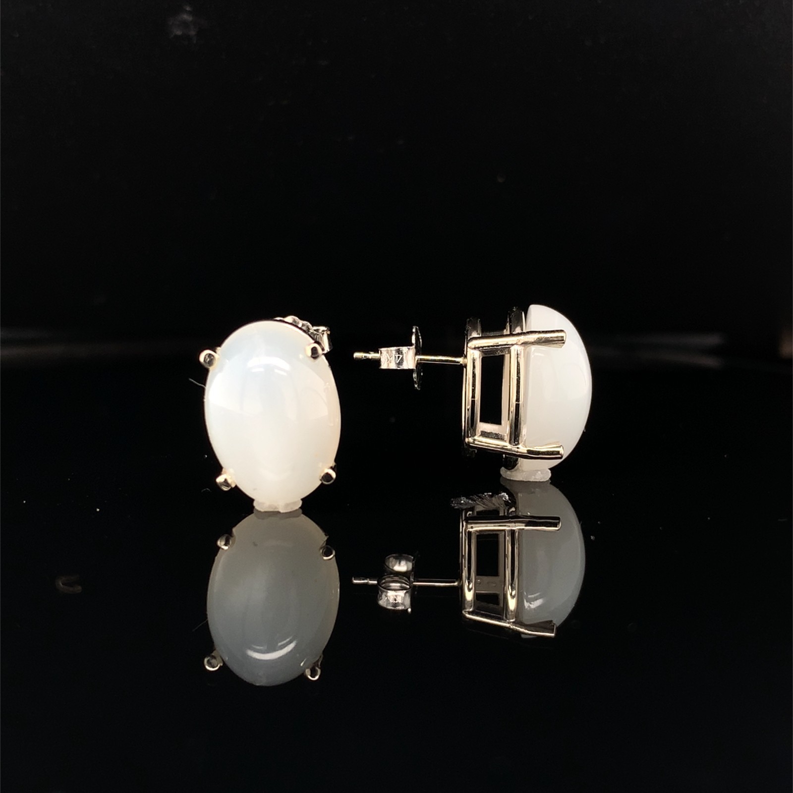 14k White Gold Large Oval Genuine Natural Moonstone Stud Earrings 11.20ct #J7382