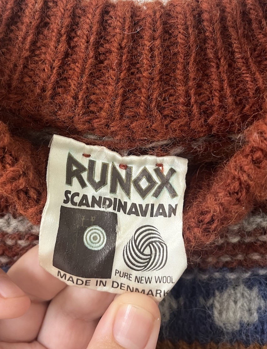 VTG Runox Unisex S/M SIZE 42 Scandinavian 100% Wool Fair Isle Chunky Sweater