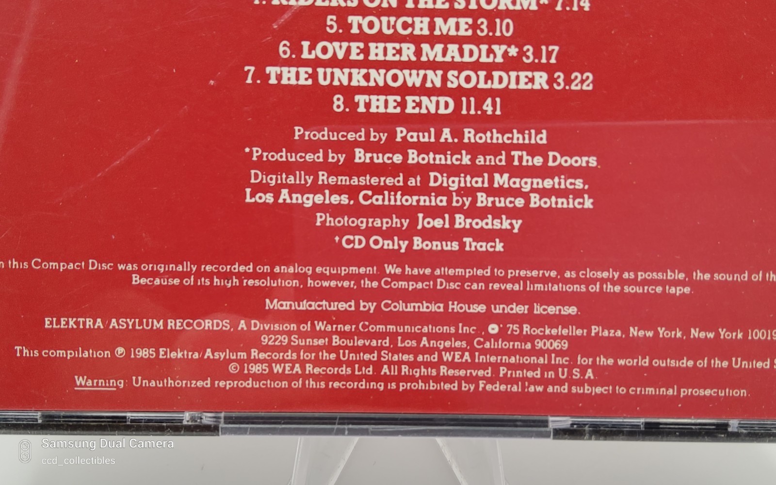 Original The Best of The Doors CD, featuring Jim Morrison?s iconic voice and the band?s timeless greatest hits. A must-have for fans of 60s and 70s classic rock.