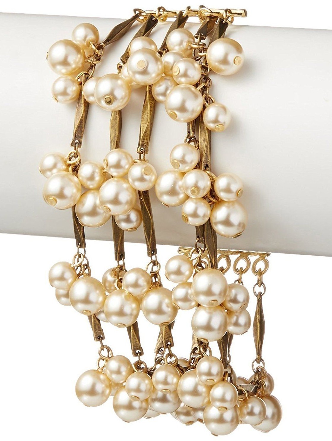 David Aubrey Hadrien Eeuu Hecho Cadena Imitacion Perla con Flecos Pulsera Nwt