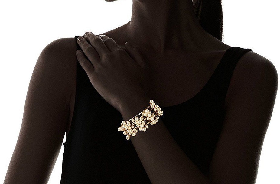 Nuevo nOir Chapado en Oro Palos y Perla Brazalete Llamativo Nwt