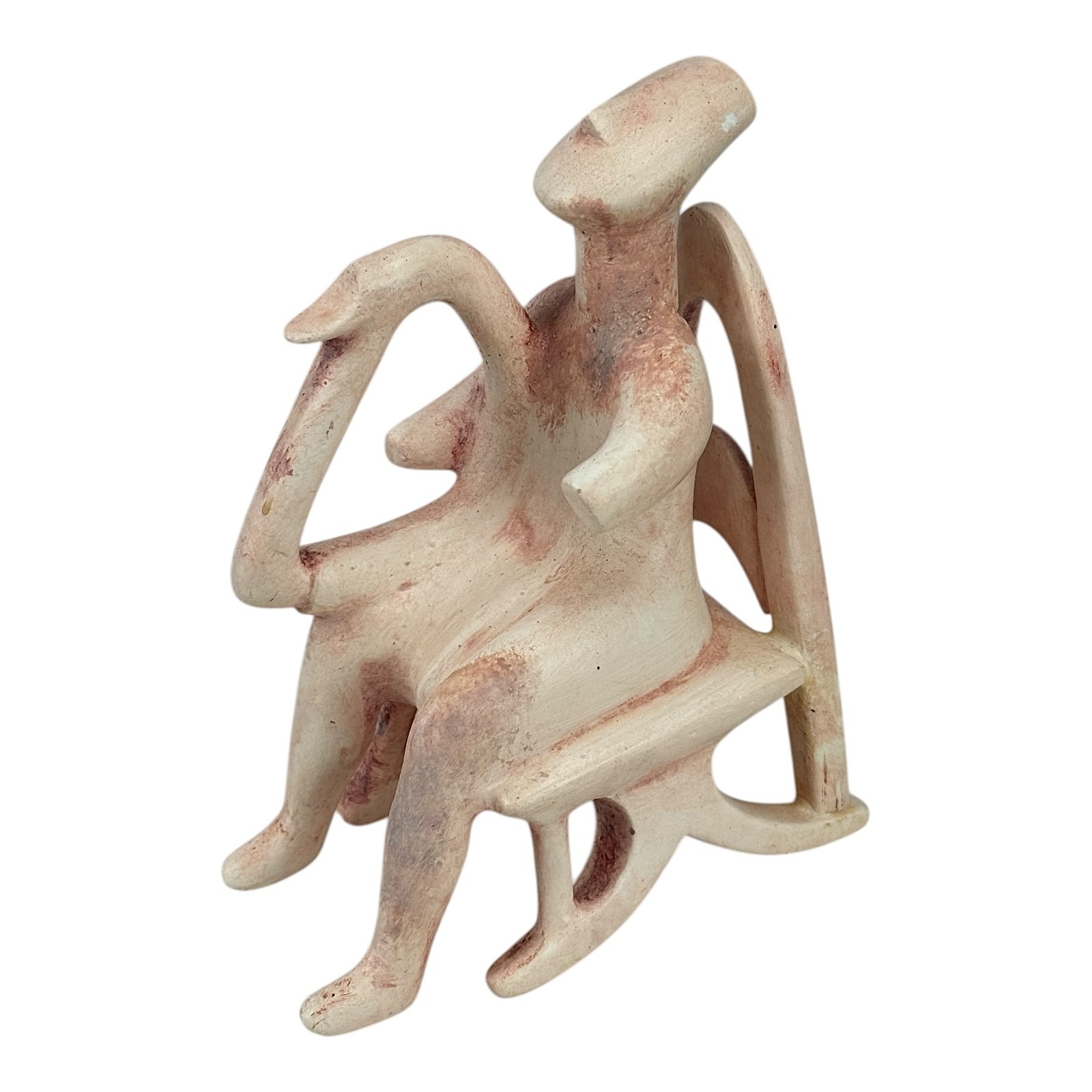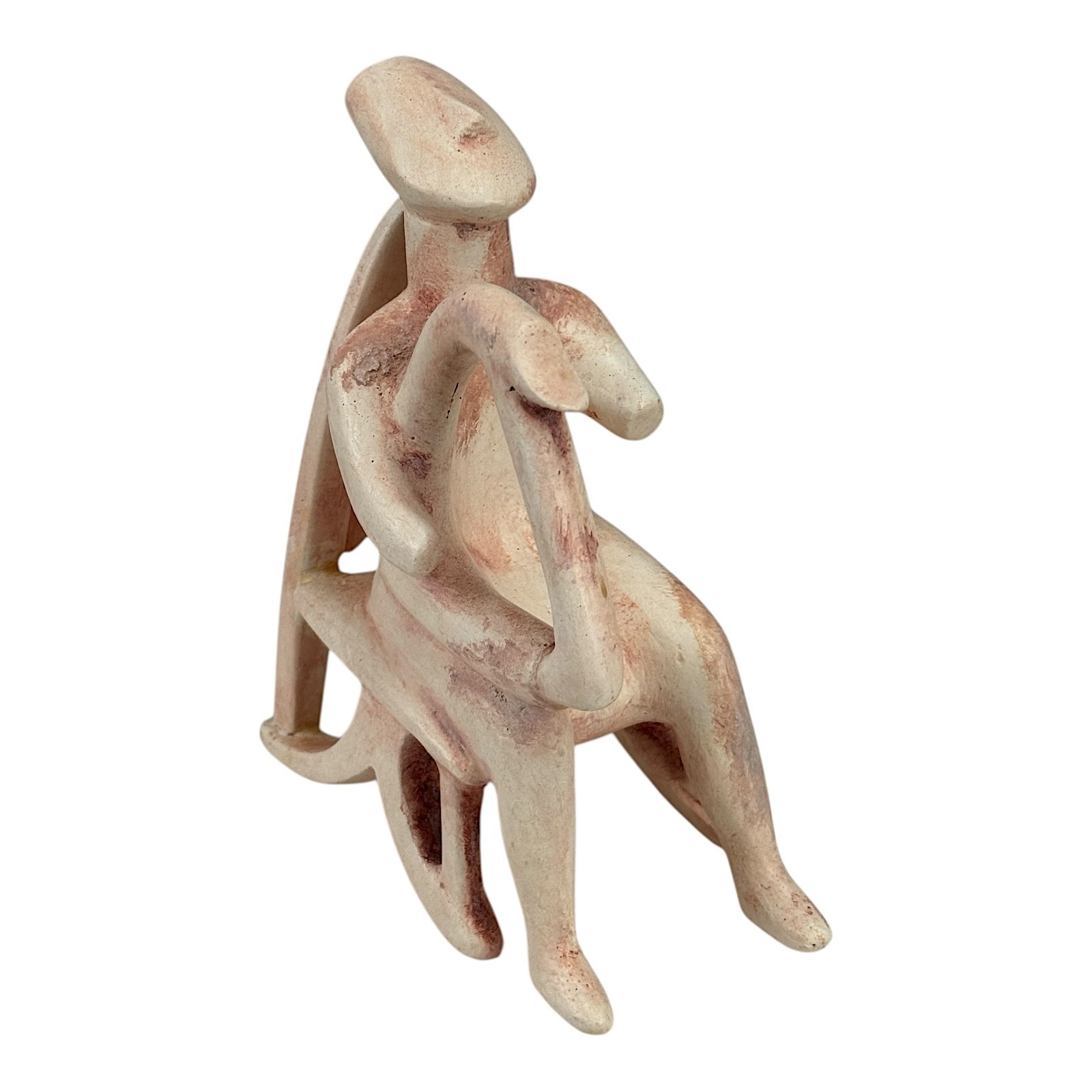 This handmade Cycladic Male Harp Player represents a musician playing the harp, reflecting the rich musical traditions of ancient Greece.