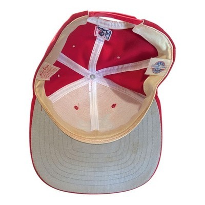 Condition: Pre-owned vintage condition. Exterior is clean and vibrant. Inside brim shows some yellowing from age/wear (see photos for details). Snapback strap intact.