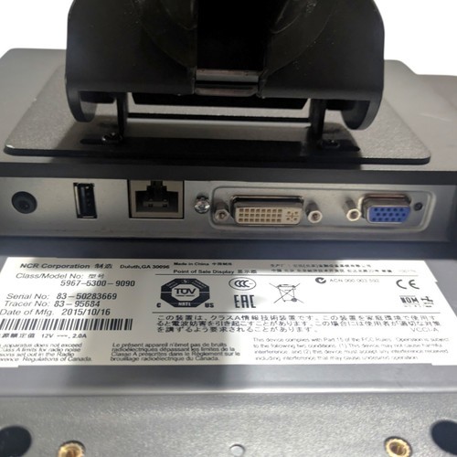 The monitor comes with all necessary cables to ease installation and connectivity. Its brand name, NCR, is synonymous with excellence in the industry, making it a great investment for any business owner looking for a dependable and efficient monitoring solution. Enhance your POS experience with this touchscreen monitor and streamline your transactions for a more productive and profitable outcome.