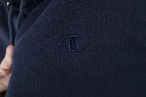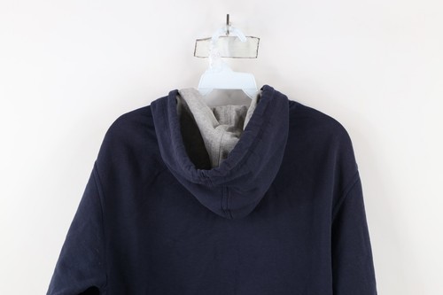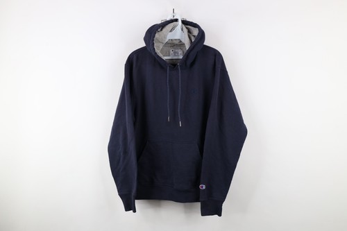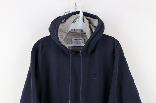 Vintage Champion Mens Medium Faded Classic Logo Hoodie Sweatshirt Navy Blue