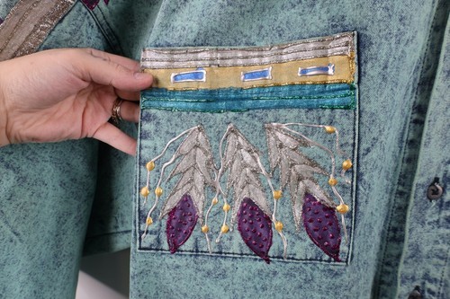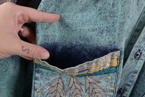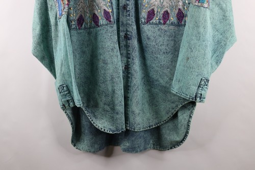 Vtg 90s Womens 2XL Acid Wash Southwestern Glitter Glue Denim Shirt Jacket USA