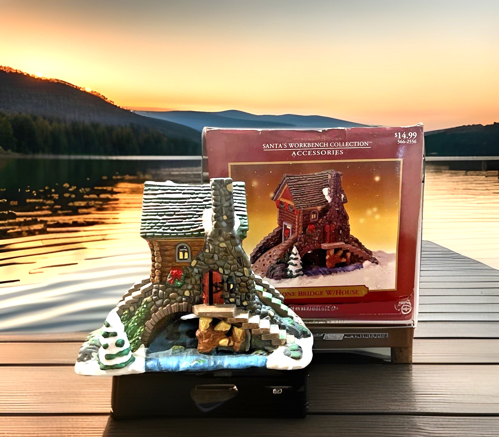 Santa's Workbench Accessories Stone Bridge with House 566-2556 With Box Retired