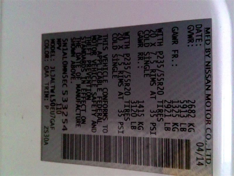 INFINITI FX SERIES 13 w/navigation, w/o lane departure warning
