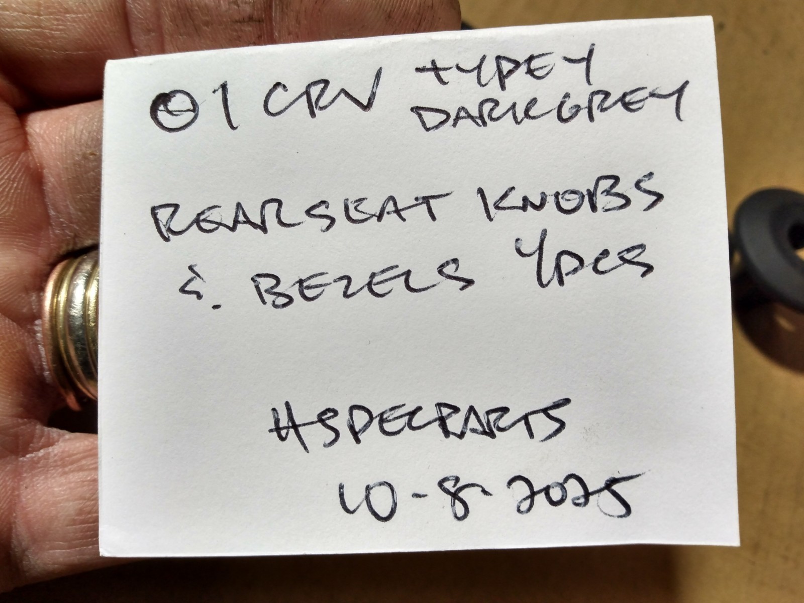 VERY GOOD USED CONDITION. MATCHING SET OF REAR SEAT LOCK RELEASE KNOBS AND BEZELS. DARK GREY FROM A 2001 CRV SE. SHIPS USPS WITHIN A BUSINESS DAY OF PAYMENT.