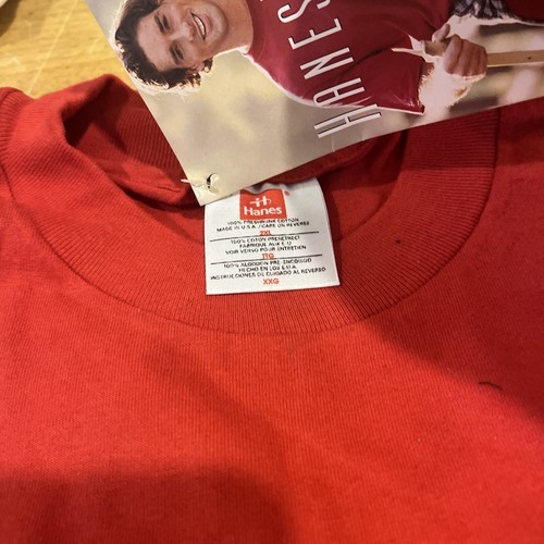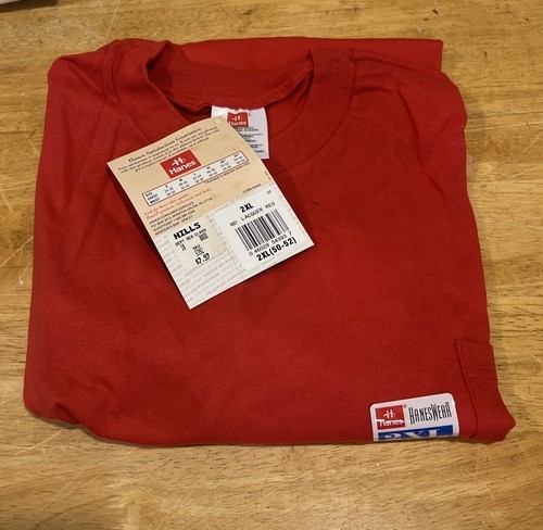 Single Stitch T-shirt Pocket Blank Vintage 1996 Hanes Wear Lacquer Red 2XL NOS