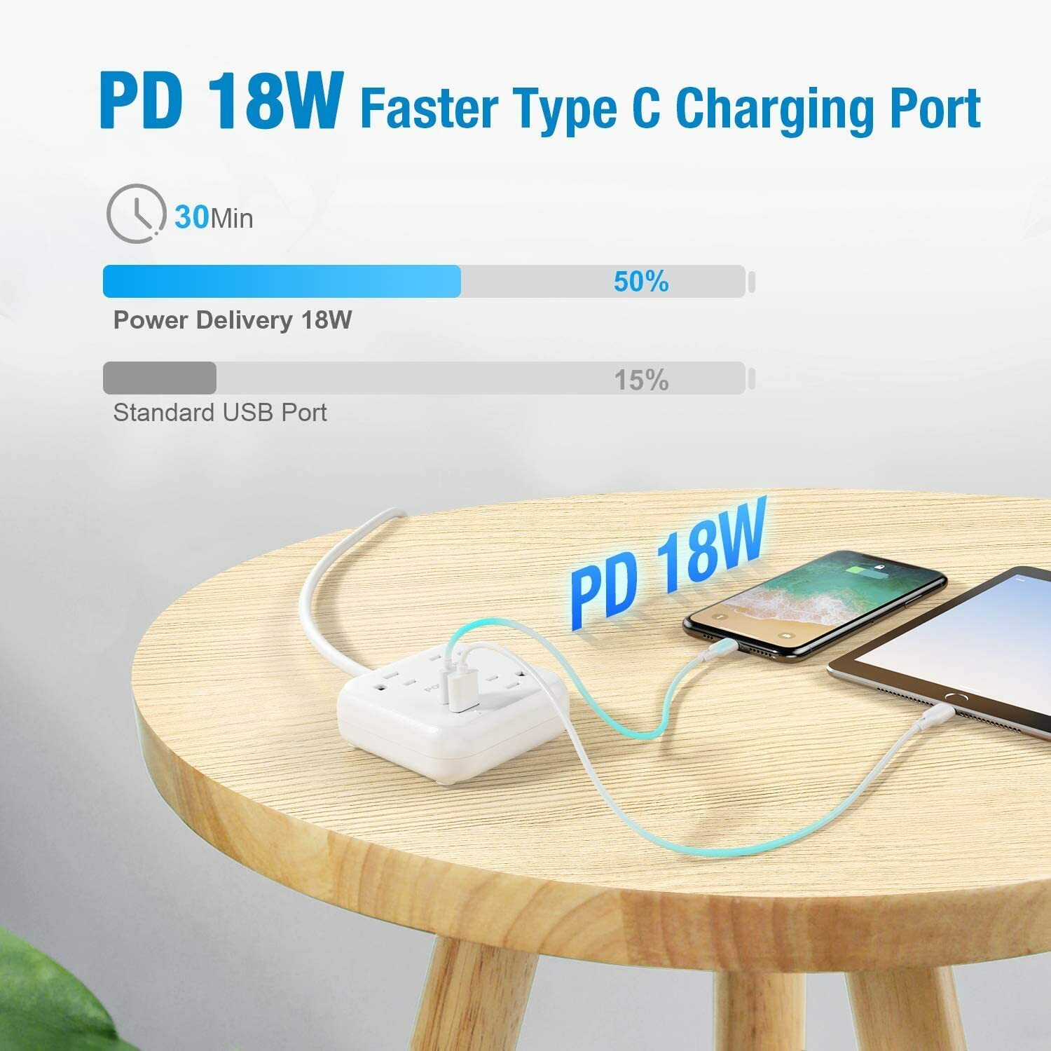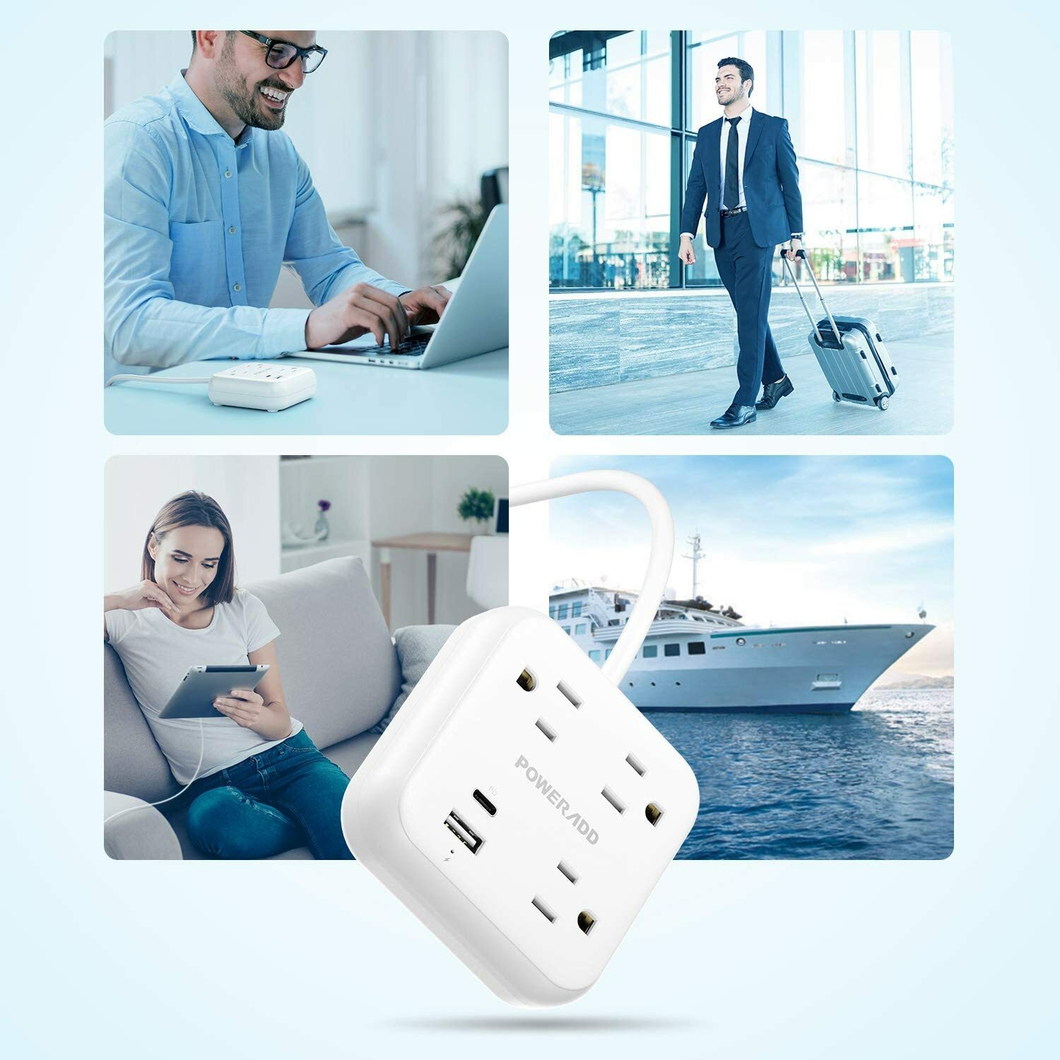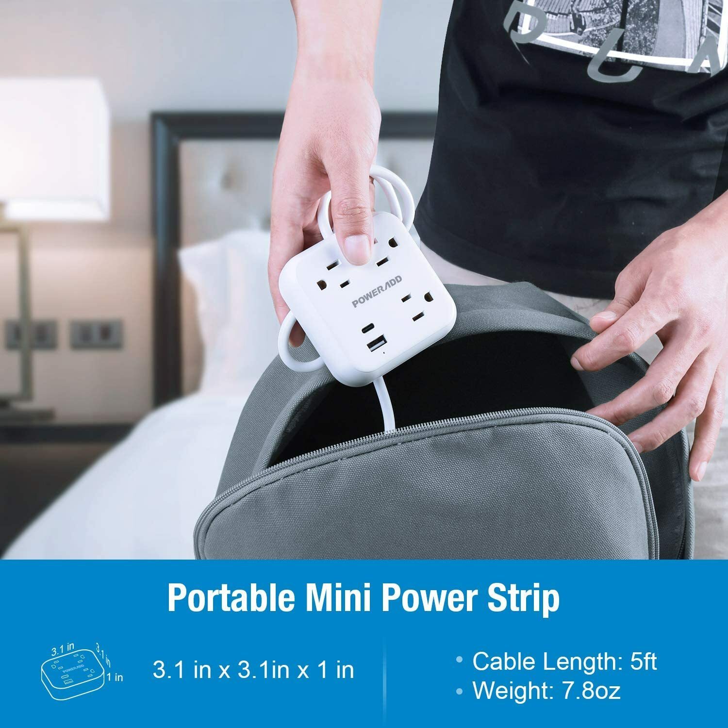 POWERADD USB C Power Strip with Power Delivery 18W Travel Power Strip Mini QC 3