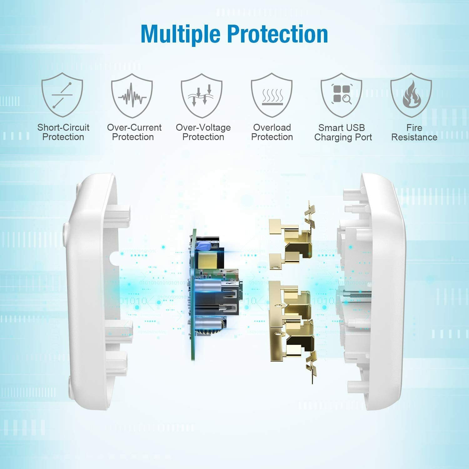 ?Safe Reliable Power Strip]?Multiple protection for your devices, overload protection, over-current protection, over-voltage protection, over-heat protection, short circuit protection and fire-resistant material.
