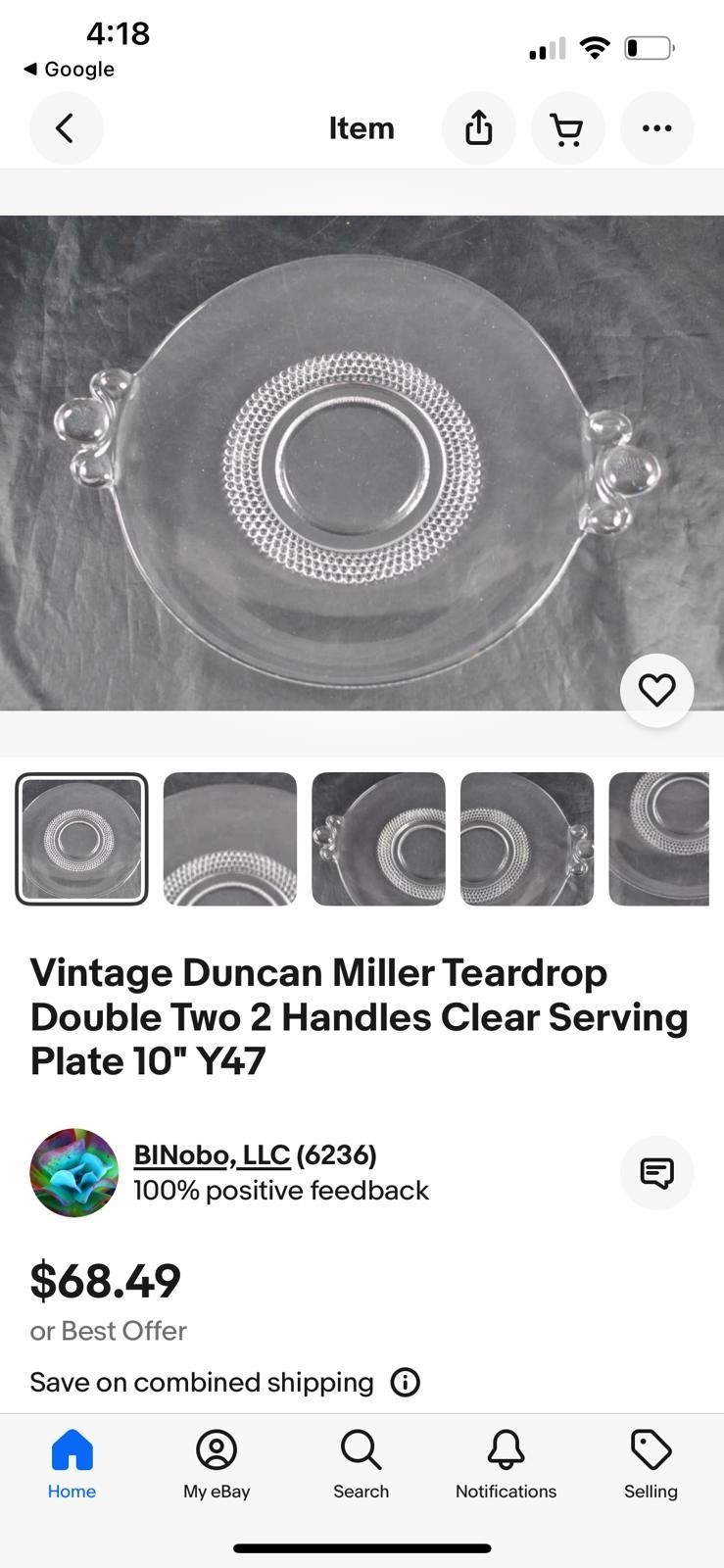 Vintage Duncan Miller Teardrop Double Handle and 40 similar items