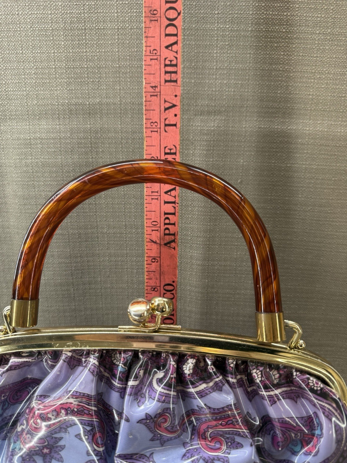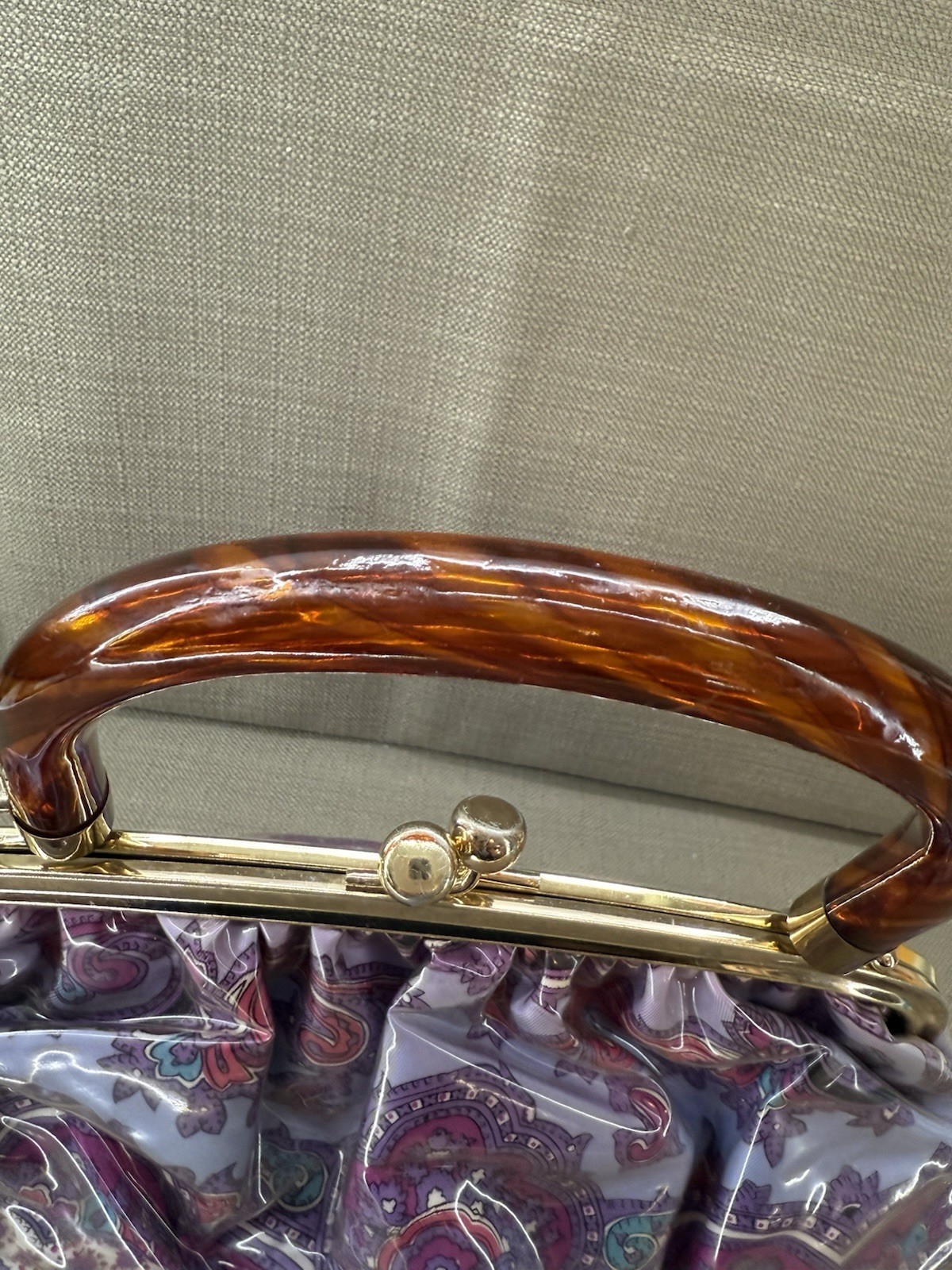 Vintage 50s-60s Purple Floral Satchel Handbag Paisley Print With Plastic Cover