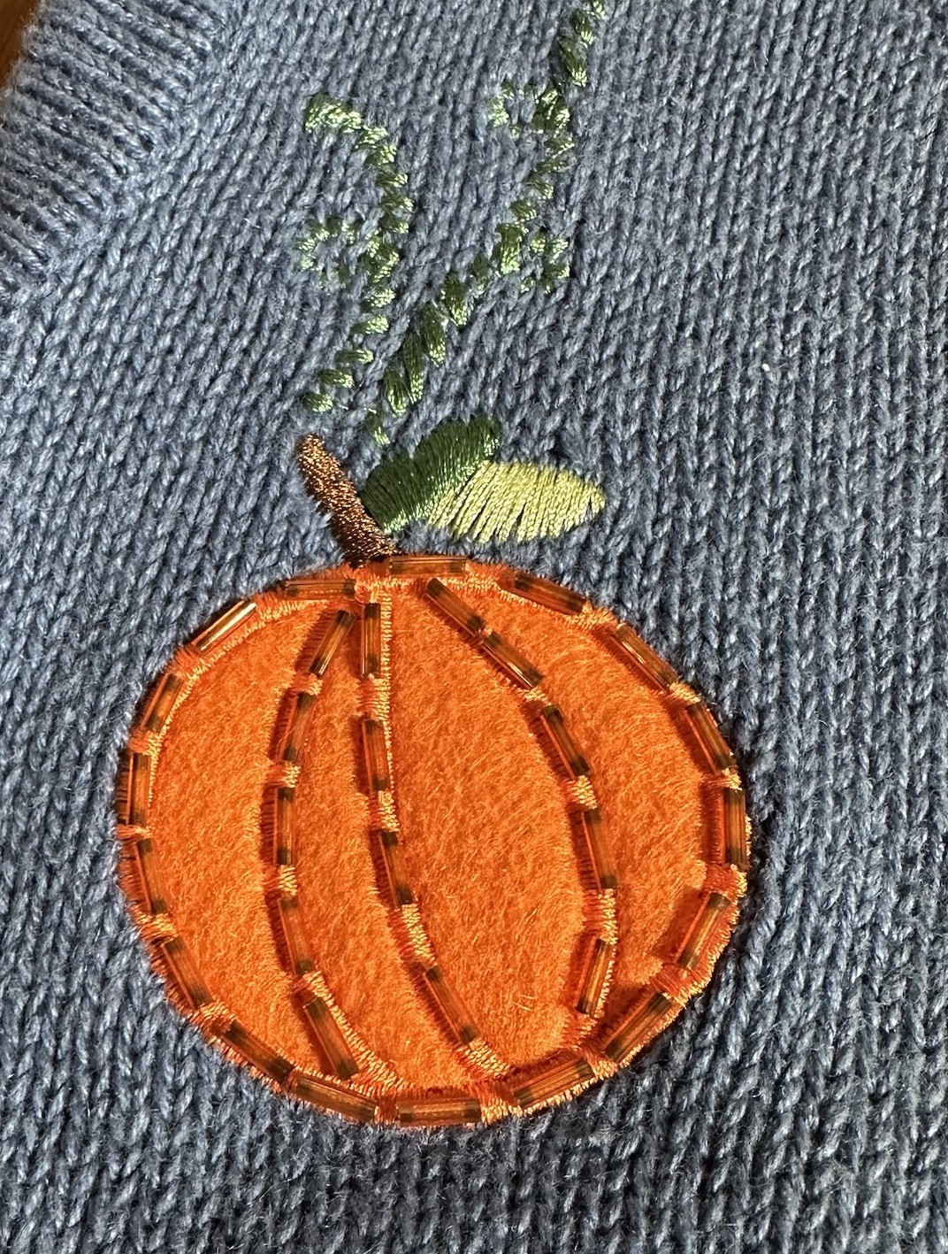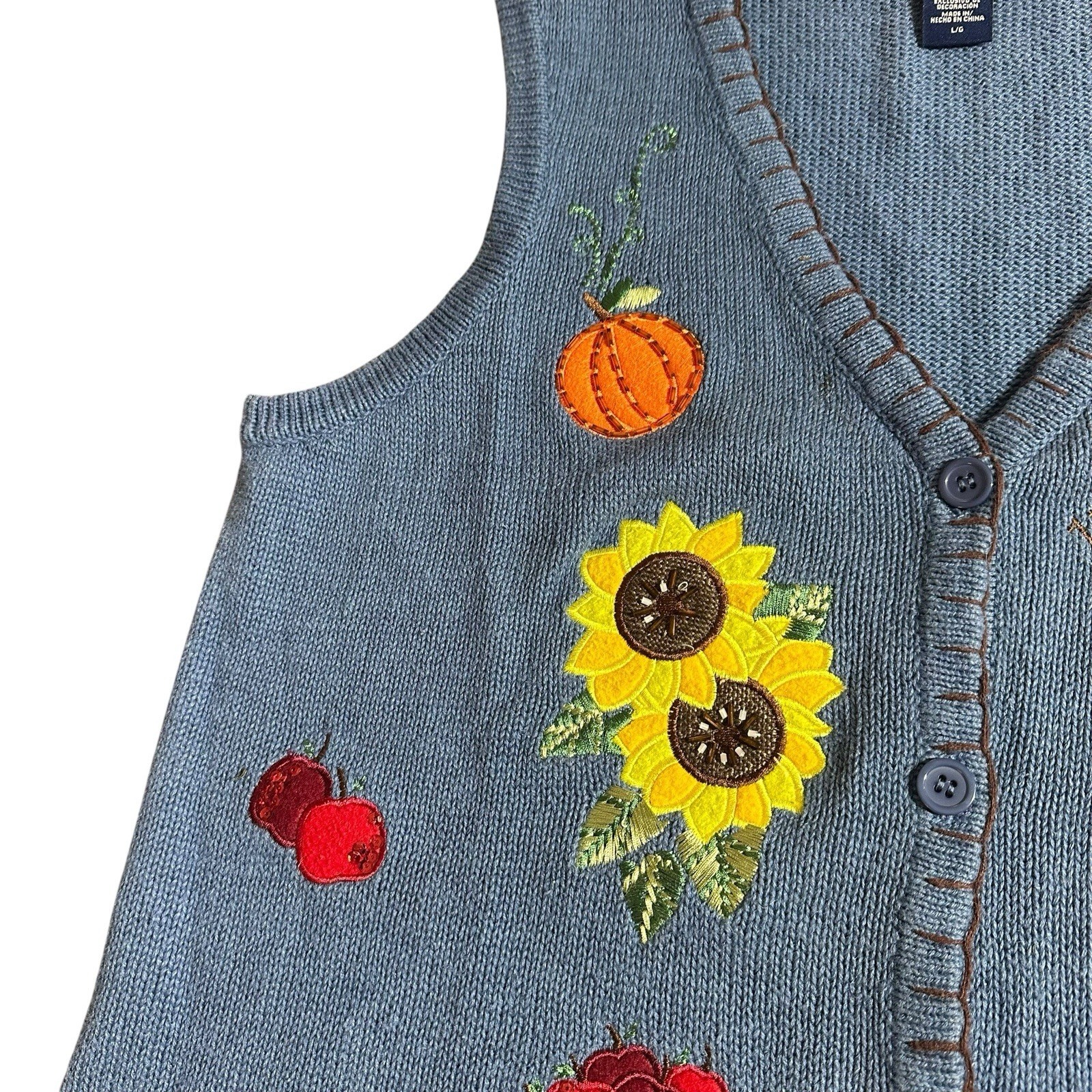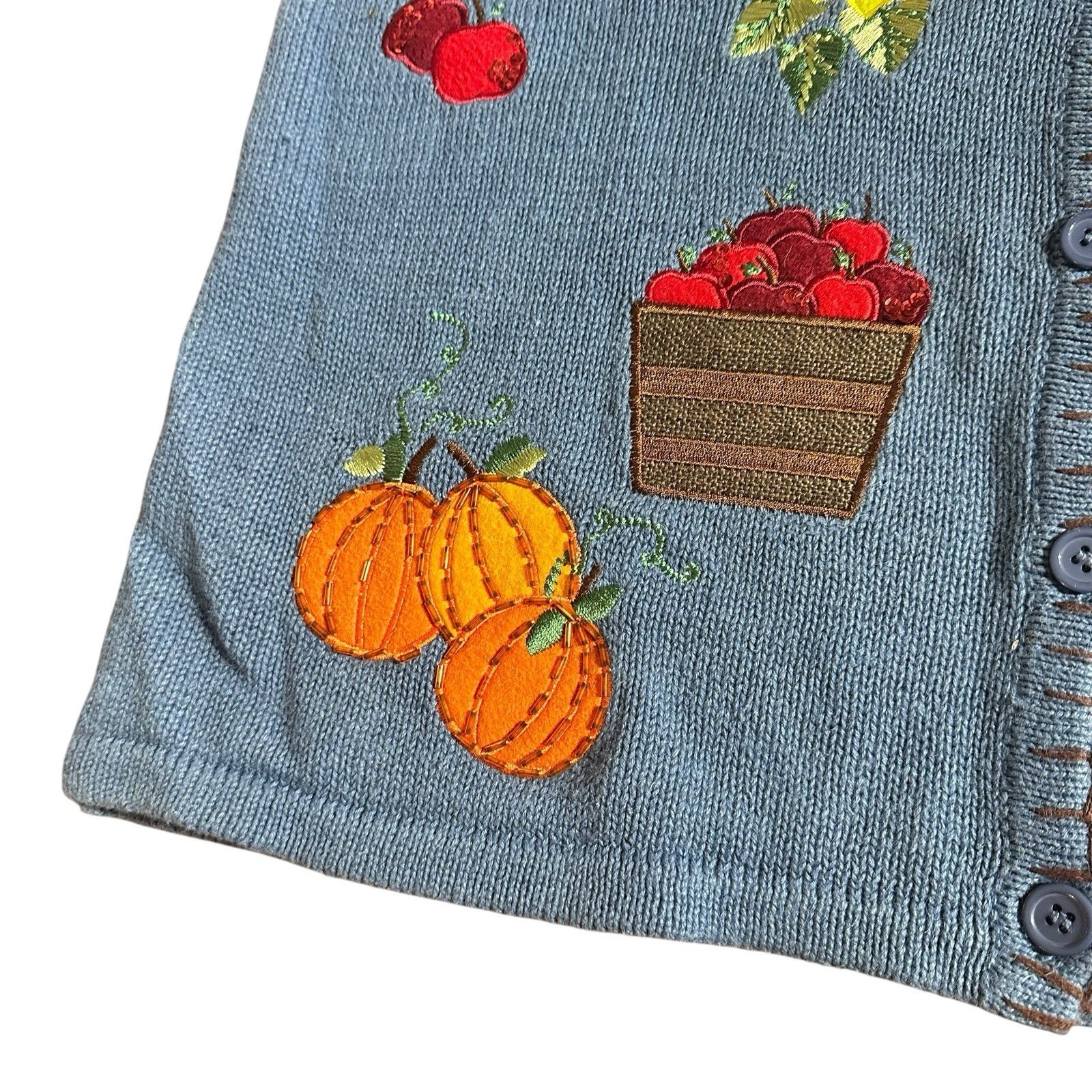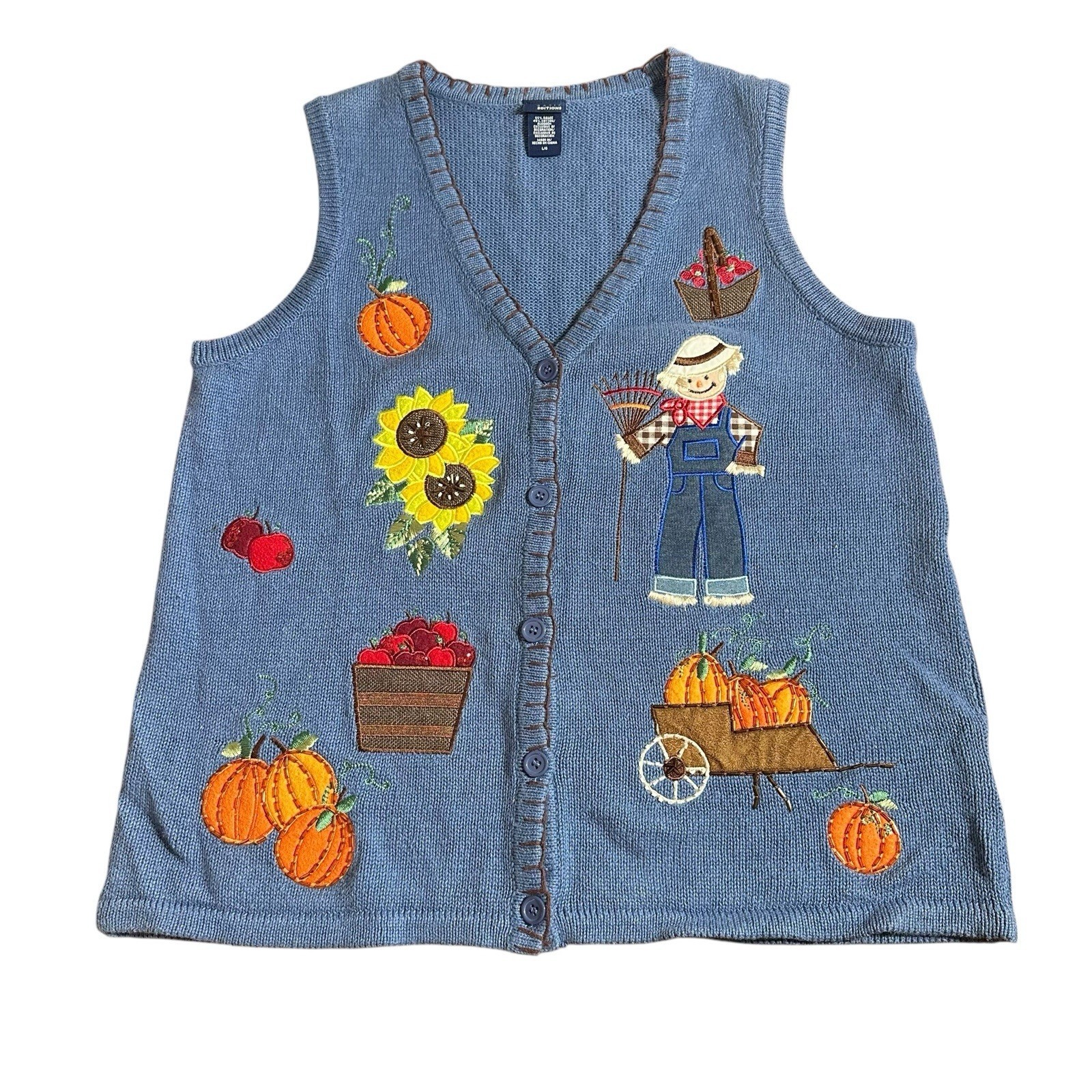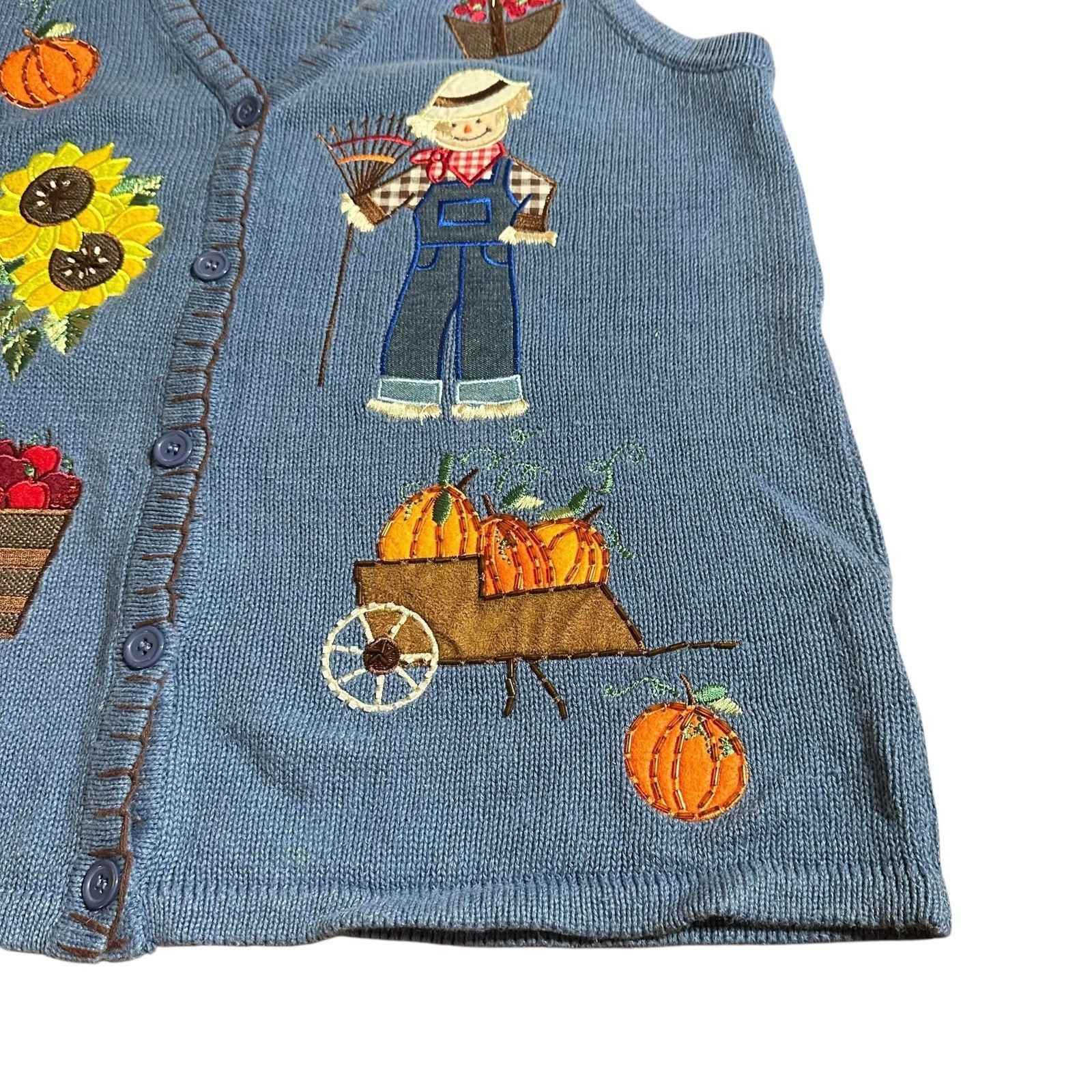 Vintage Basic Editions Women's Fall Harvest Halloween Sweater Vest Beaded Embroidered Blue