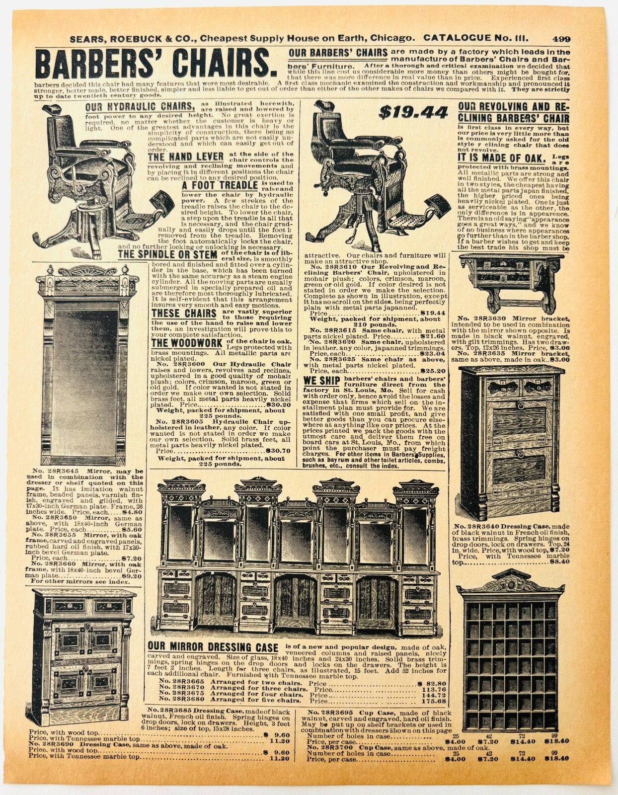 1969 Barbers Chairs Furniture 1901 Repro Advertisement Sears Barber DWU17A