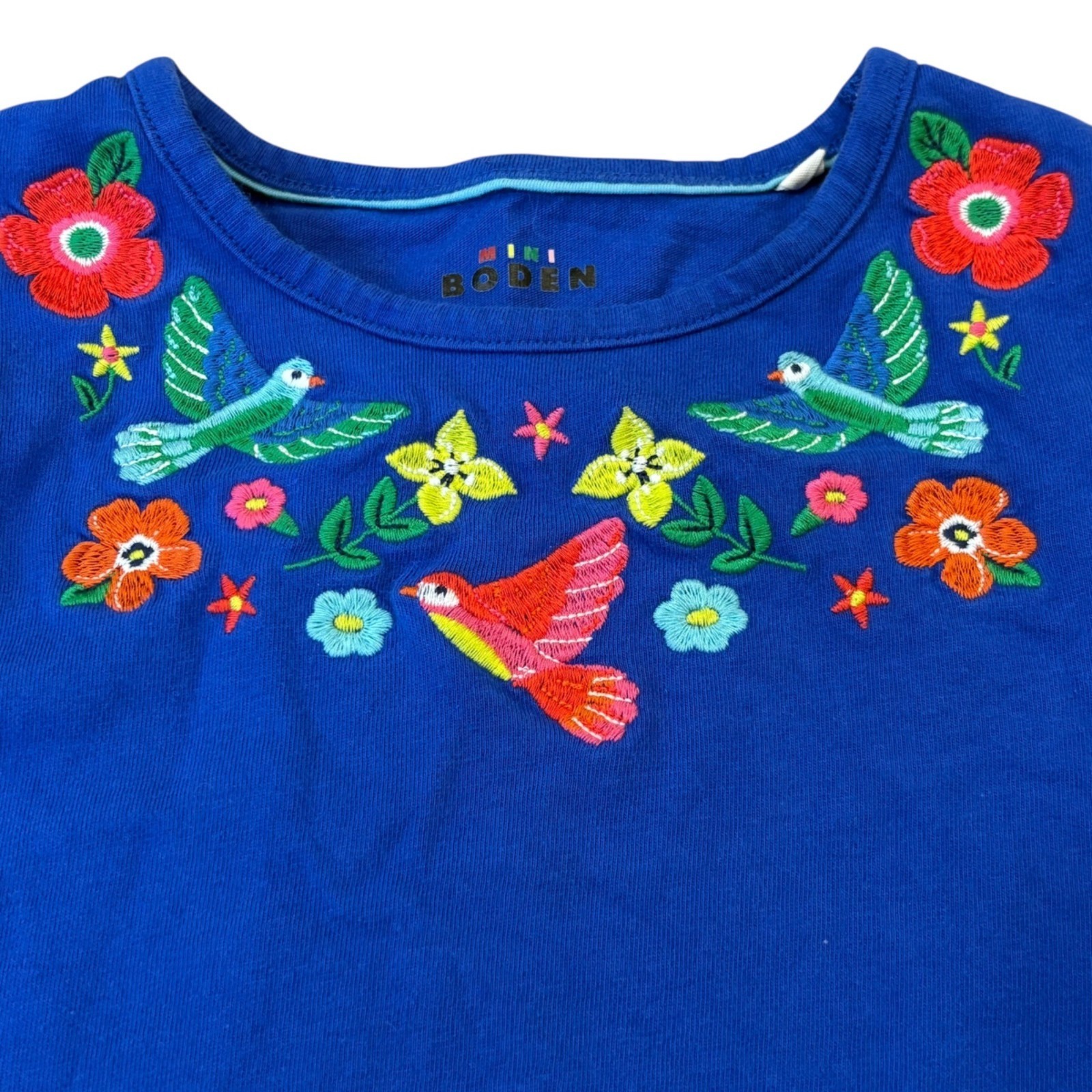 Mini Boden Girls Embroidered Bird & Flower Dress Blue 8-9Y