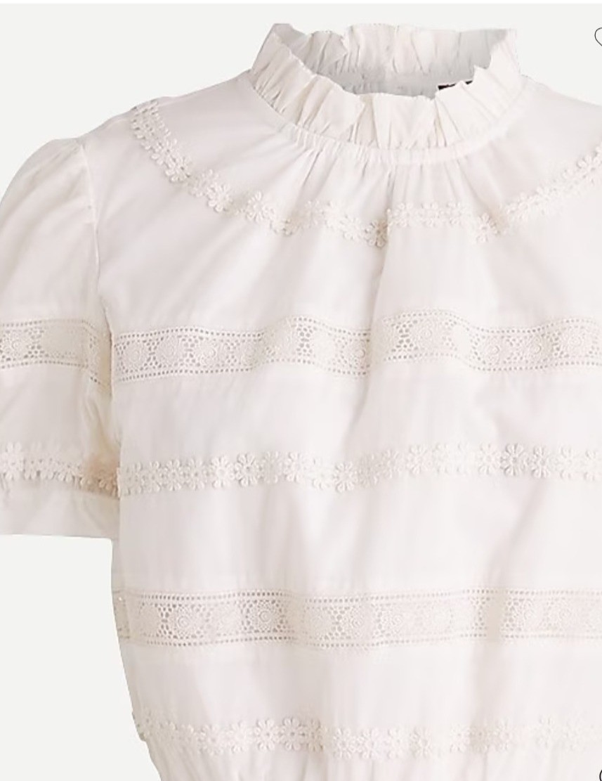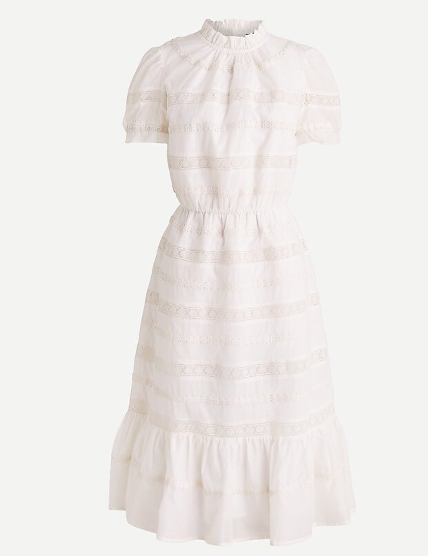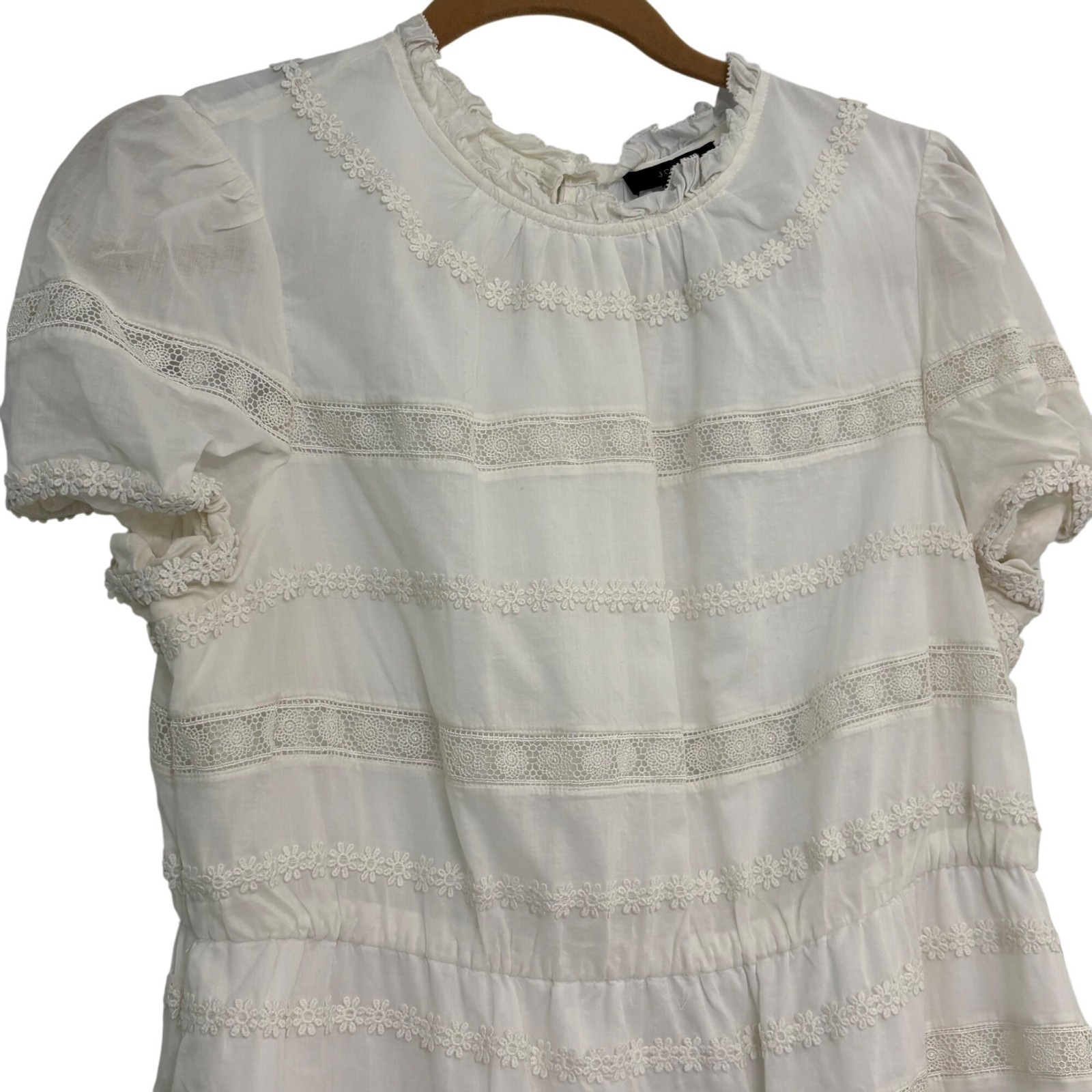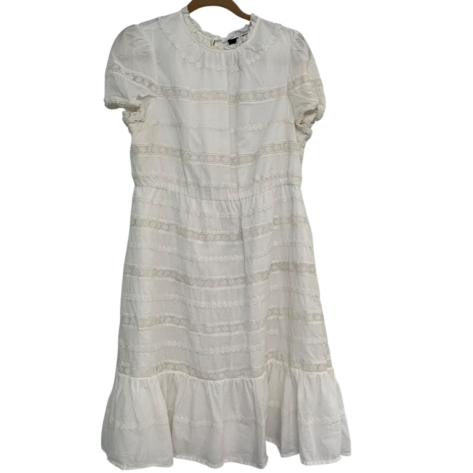 J. Crew Puff Sleeve Daisy Train Midi White Dress Organic Cotton Size 12