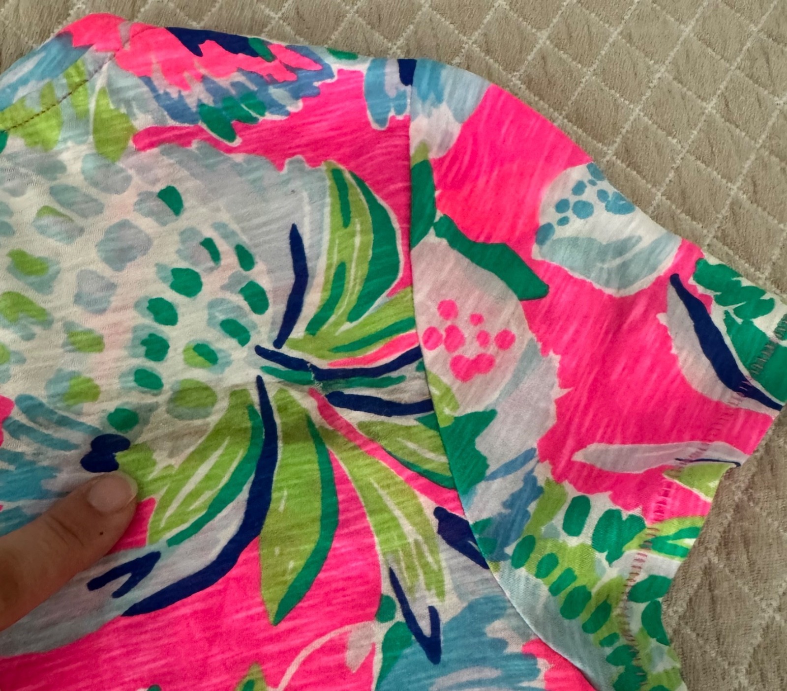 Lilly Pulitzer Etta V-Neck T-Shirt Raise The Bar Pink Pineapple Size S NWOT