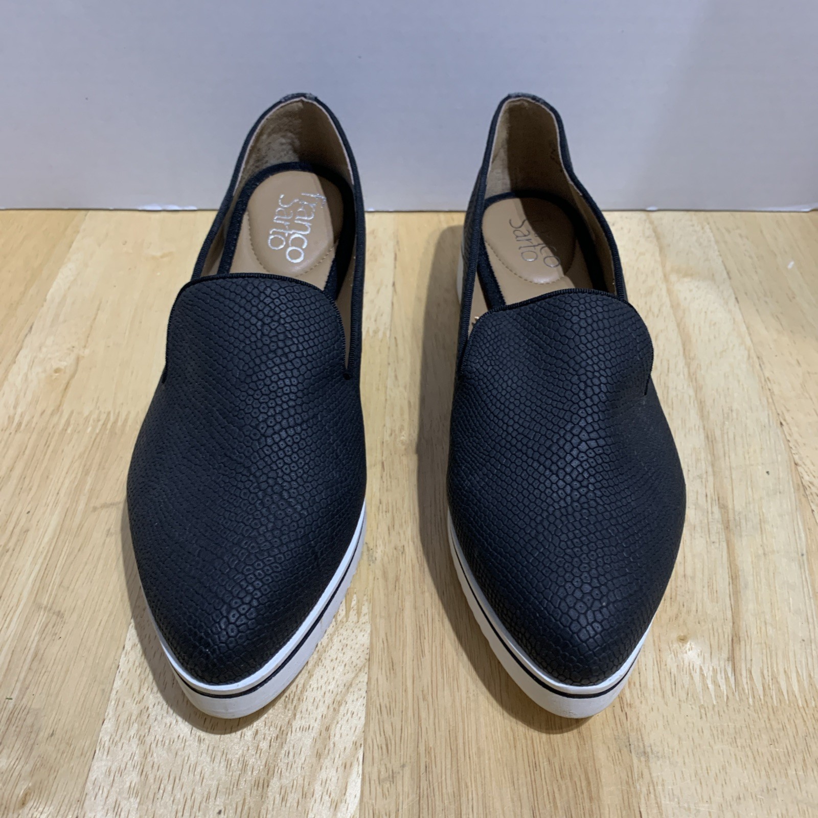 Franco Sarto Black Emboss Nubuck Leather Fabrina Sporty Loafer Shoes 7