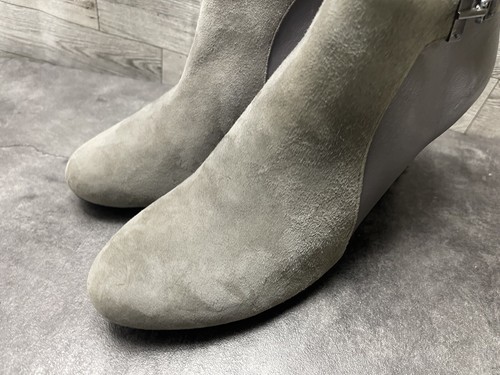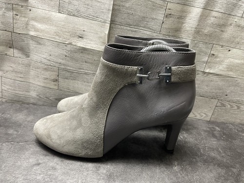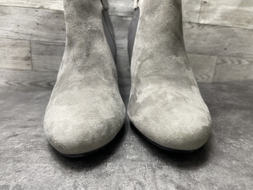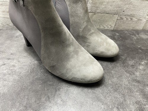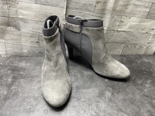 Bandolino Boots Women 9.5 M Lappo Shoes Gray Suede Patent Heel Ankle Bootie