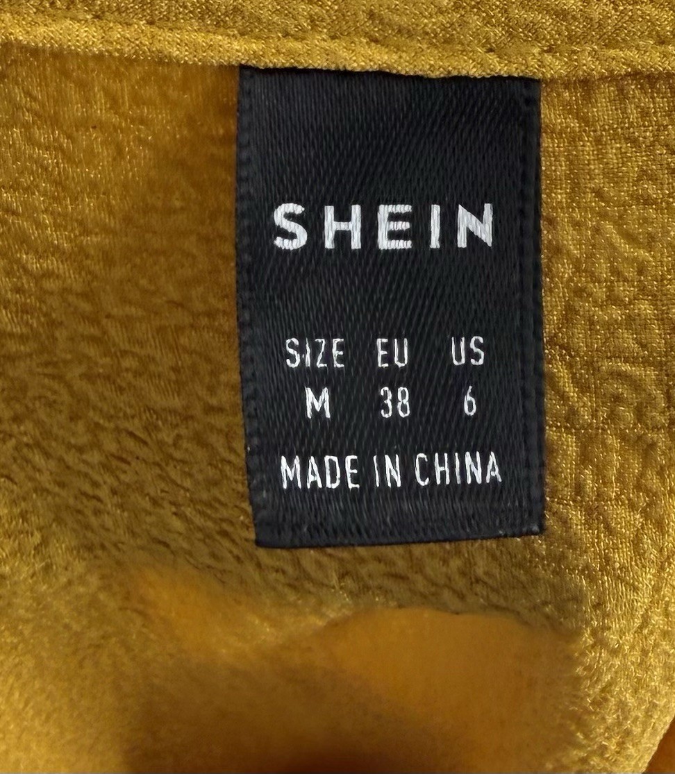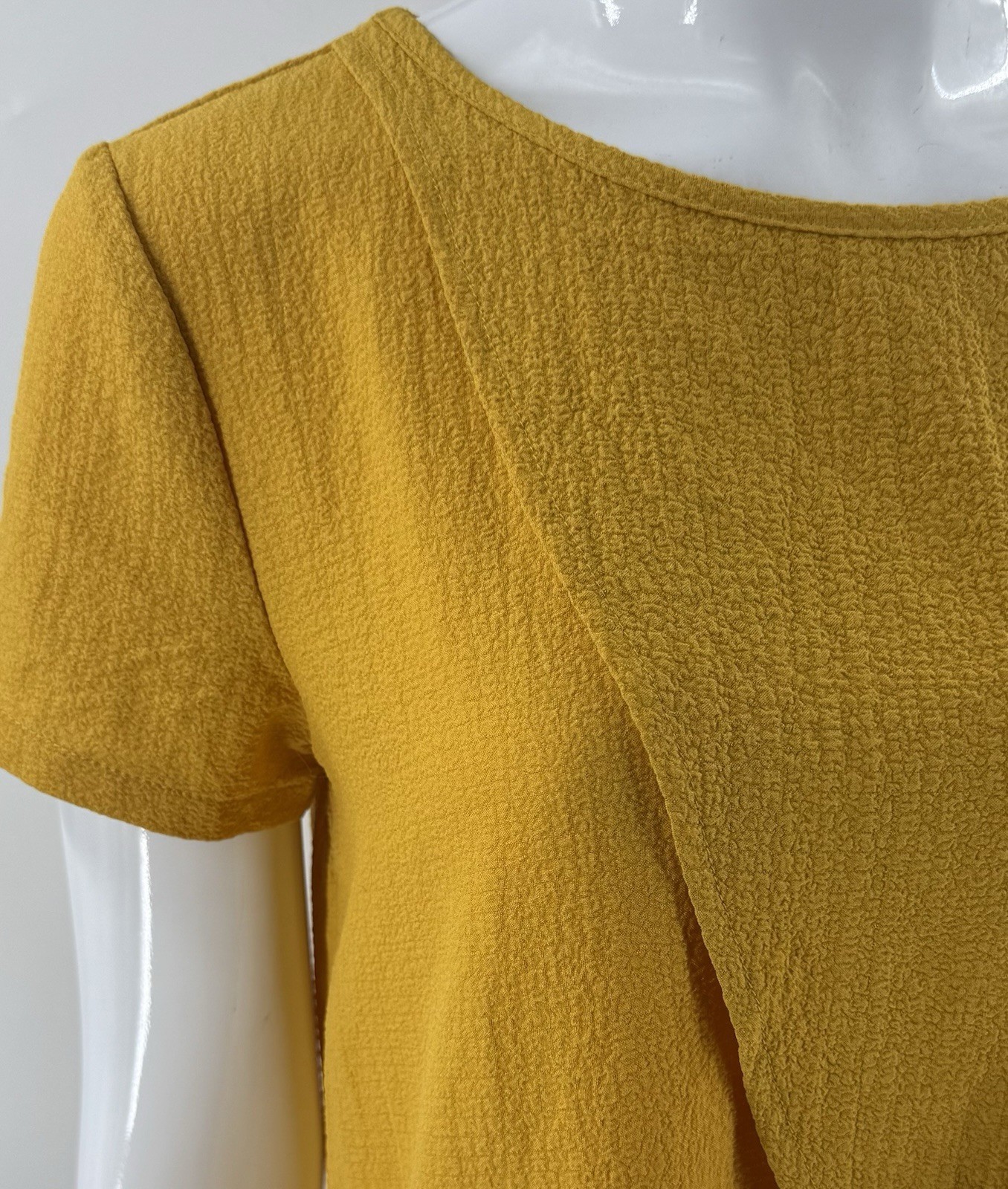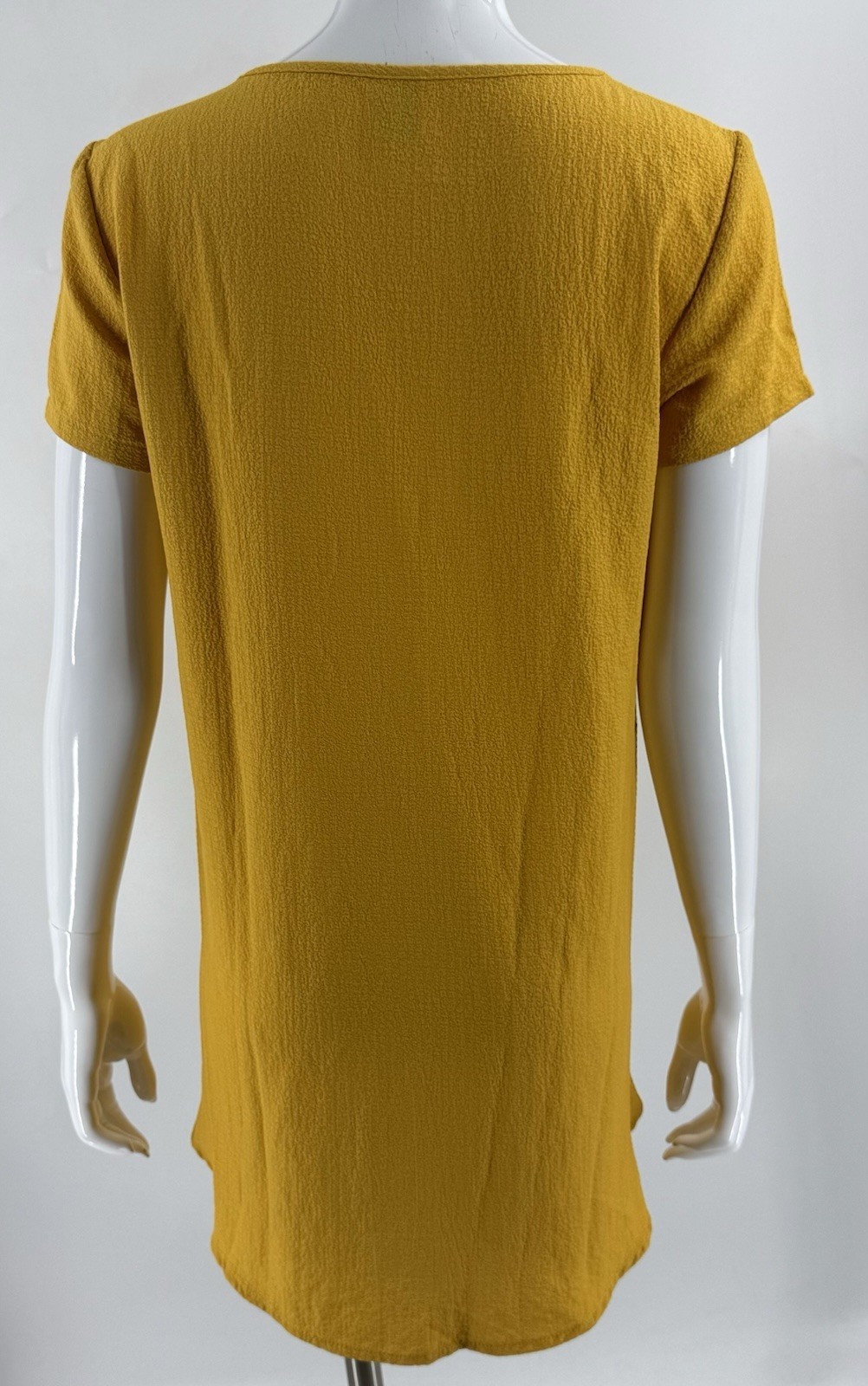 Shein Tunic Top Size Medium Golden Yellow Crossover Hem Crinkle Texture Womens