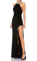 Ieena Mac Duggal 26533 Rhinestone Accented Open Back Jersey Gown SZ 0 Black $298