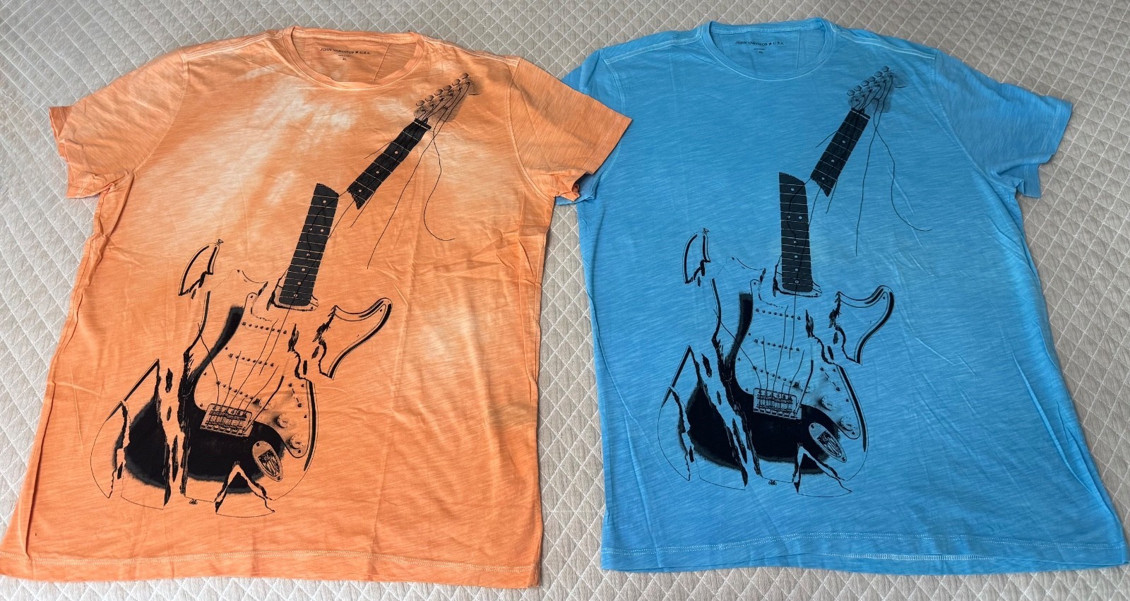 Lot of 2 John Varvatos Star USA Men's Stone Wash Broken Guitar T-Shirt Size XL