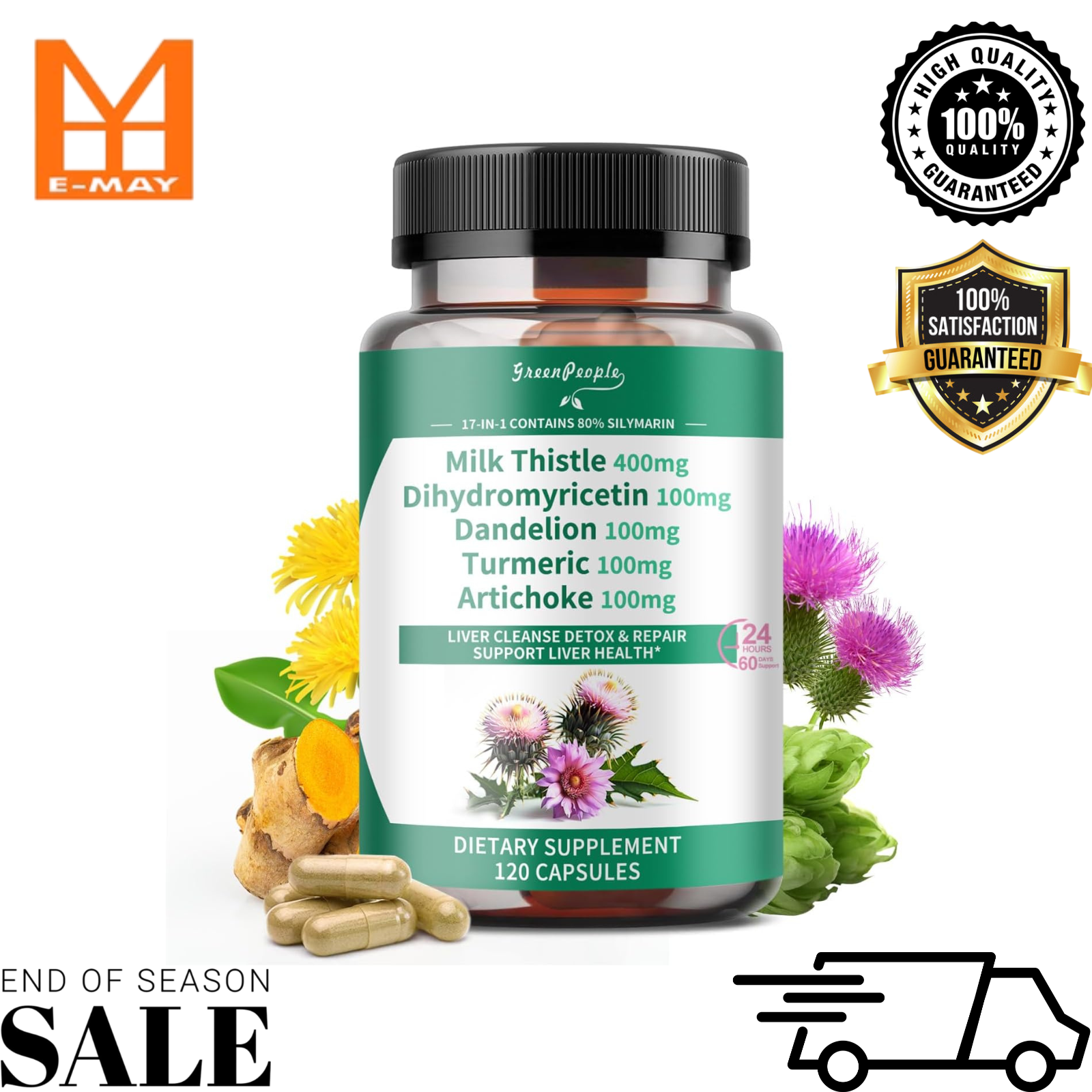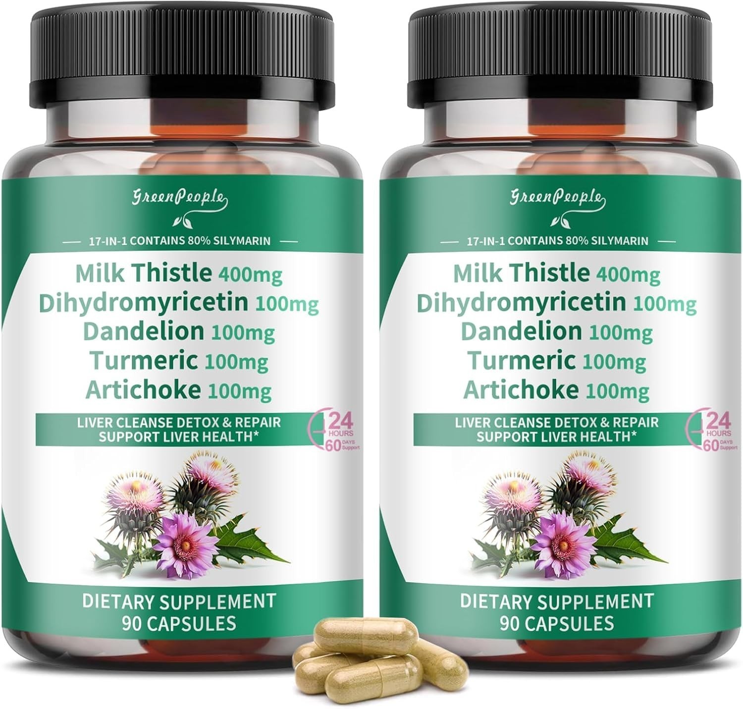 Standardized to 80% silymarin, each capsule contains 400 mg. The formula combines Milk Thistle (80% Silymarin) with Curcumin Turmeric (95% curcuminoids), zinc, and selenium?merging traditional herbal wisdom with science-backed support.