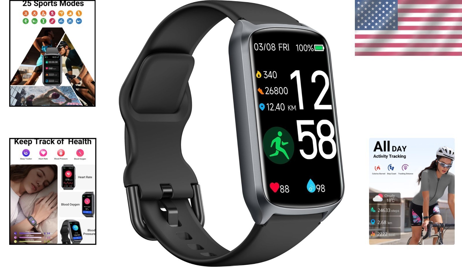 Advanced Health Fitness Tracker: Blood Oxygen, Pressure & Sleep Insights - Black