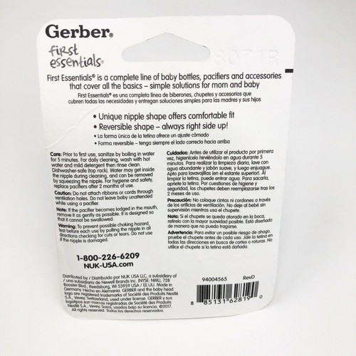 Gerber First Essentials Calming Pacifiers 0-6 Months 2 Pack Discontinued