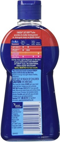 Finish Jet Dry Turbo is a remarkable drying rinse aid that provides three times better drying power vs. dishwasher detergent alone, even on your plastics!