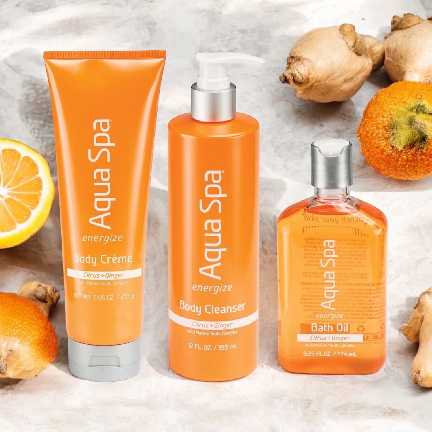 Aqua Spa Energize Citrus & Ginger Body Cleanser, Body Creme, & Bath Oil