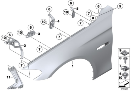 2011-2016 bmw f10 528i 535i 550i front passenger side fender bracket #4 mount