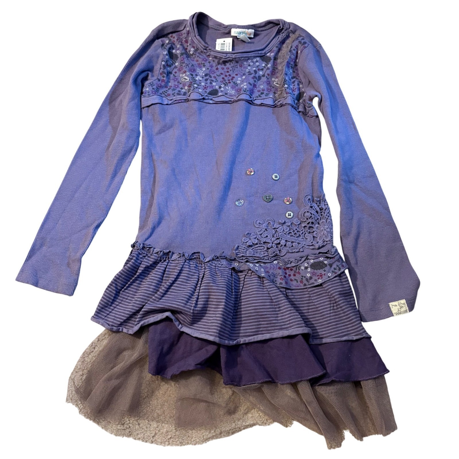 Naartjie Kids Purple Long-Sleeve Layered Dress XXL 8 Years NWT