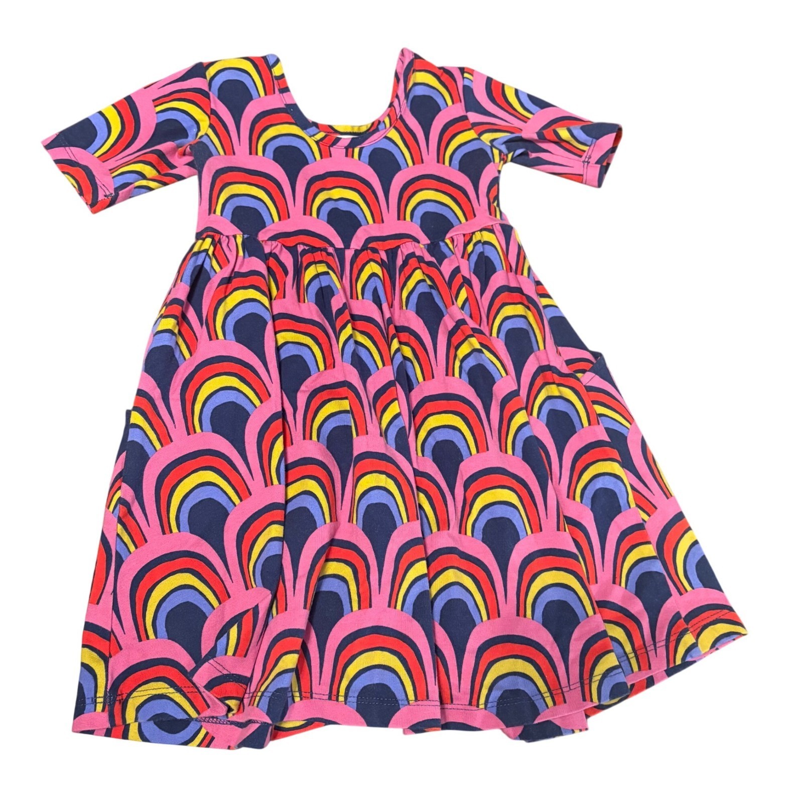 Hanna Andersson Elbow Print Hello Rainbow Dress 3T Pink & Navy Cotton Blend