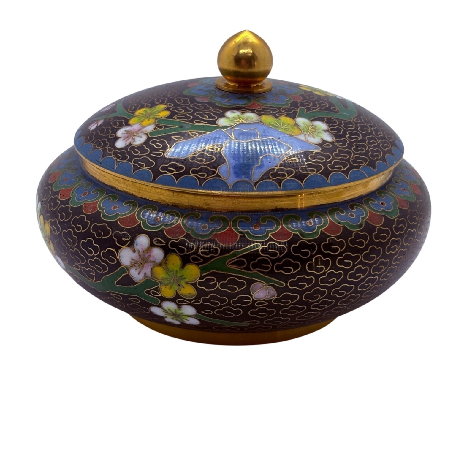 Vintage Cloisonné Lidded Jar With Floral Design & Gold Accents