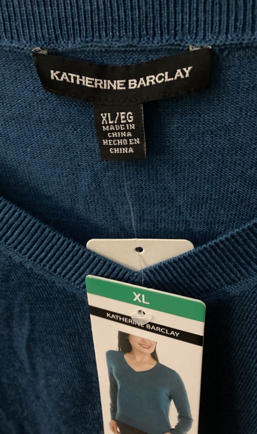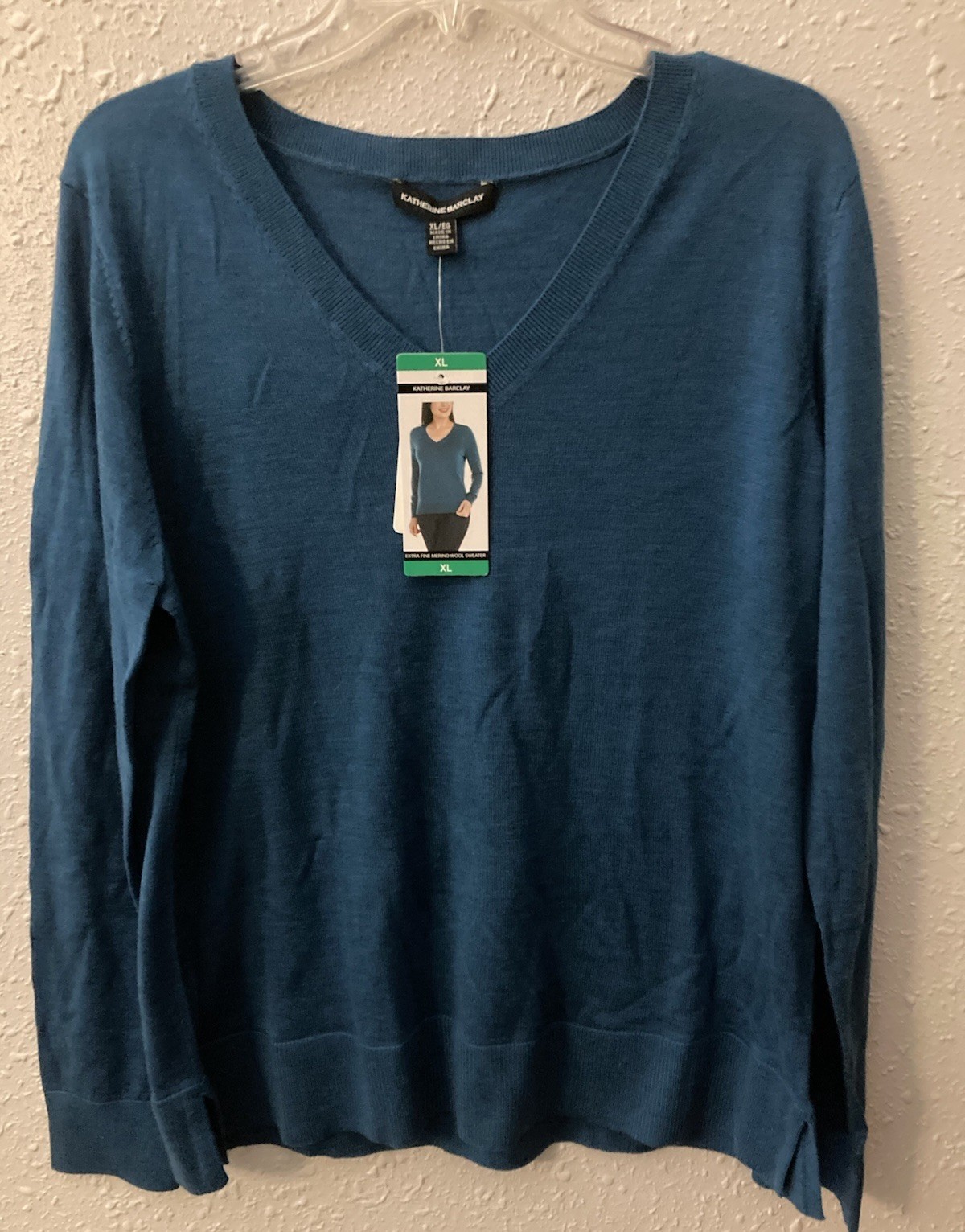 Katherine Barclay XL Merino Extra Fine Wool Sweater (Color Peacock) New.. Condition is New with tags. Shipped with USPS Ground Advantage.