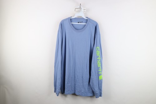 Vintage Y2K Carhartt Mens 2XL Faded Spell Out Long Sleeve T-Shirt Blue Cotton