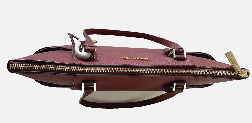 New Michael Kors Charlotte Large Shoulder Tote Saffiano Leather Dark Cherry
