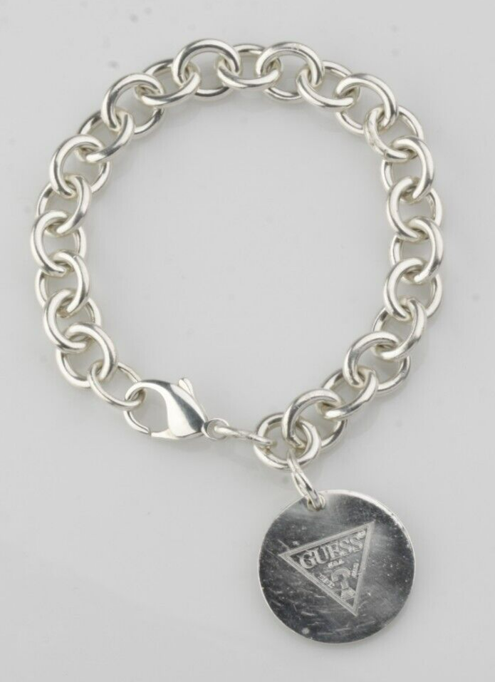 Tiffany & Co. Sterling Silber Runde Anhänger Charm Armband Mit "GUESS" Logo