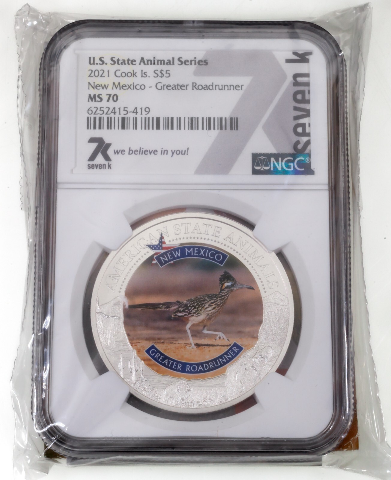2021 Cook Islands S $ 5 Tierreihe New Mexico von NGC als MS-70 bewertet